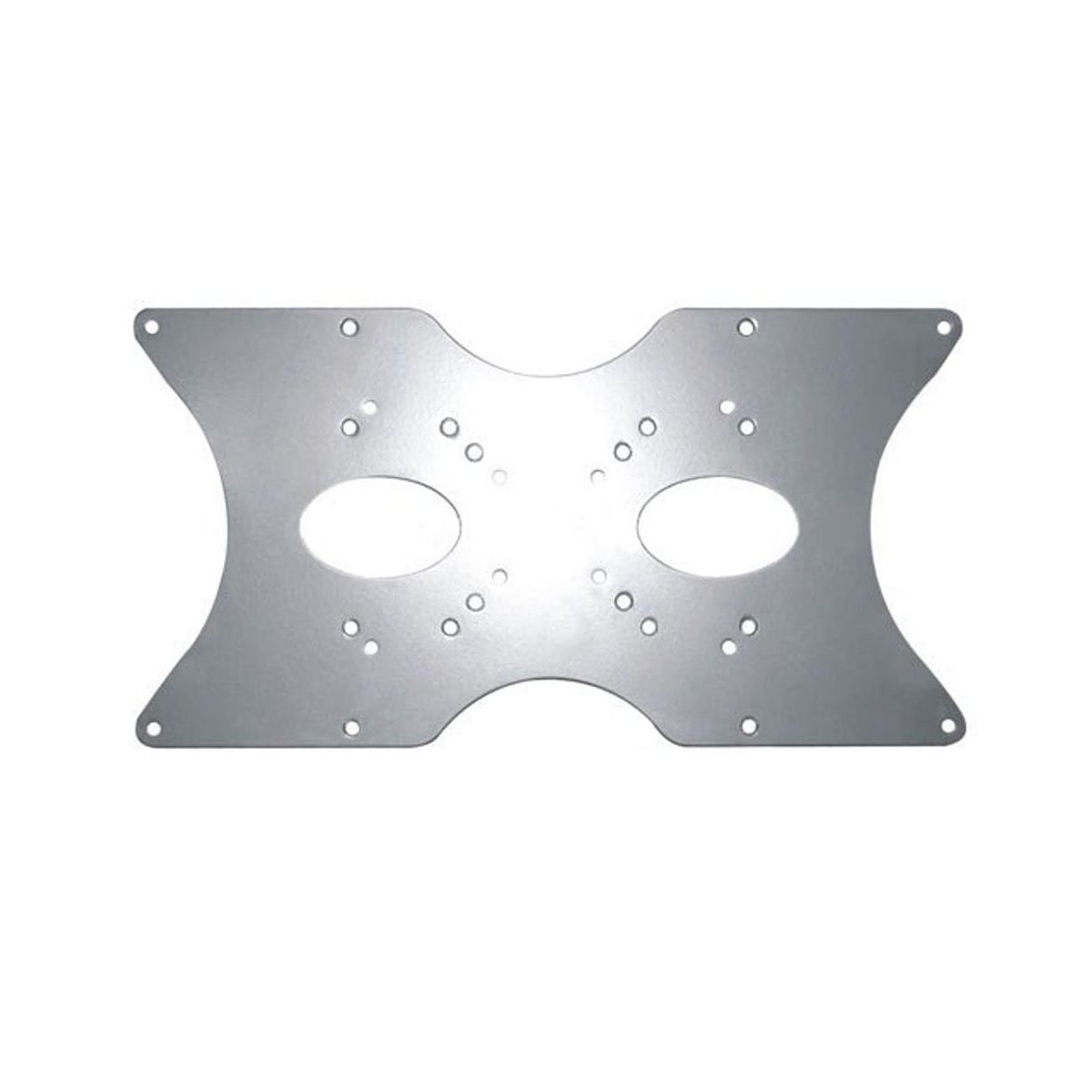 This adapter bracket includes holes for VESA 50x50, 75x75, 100x100, 200x100, 200x200, and 400x200, allowing you to adapt from one size to another.