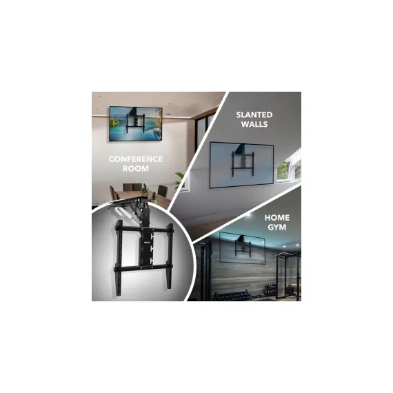 Elevate your viewing experience with our motorized TV ceiling mount, engineered to bring both functionality and style to any space. This sophisticated mount is perfect for effortlessly raising or lowering your TV with the included remote control, optimizing viewing angles and neatly tucking the TV away when not in use. Designed to support large screens ranging from 50'' to 90'' and capable of handling weights up to 88 lbs, it's the ideal solution for expansive display setups. With universal VESA compatibility from 200x200 to 600x600, it easily fits most TV models, ensuring a wide range of applications. The durable steel construction guarantees that your TV stays securely mounted, providing peace of mind in any installation. Available in elegant black or white finishes, this ceiling mount seamlessly blends with any room's decor, enhancing your space with a sleek, modern look. Whether it's used in residential homes to save space and enhance living rooms or bedrooms, in corporate boardrooms to facilitate presentations, or in commercial settings like hotels and restaurants where aesthetics and functionality are paramount, this electric TV ceiling mount offers a premium solution that combines convenience with style.