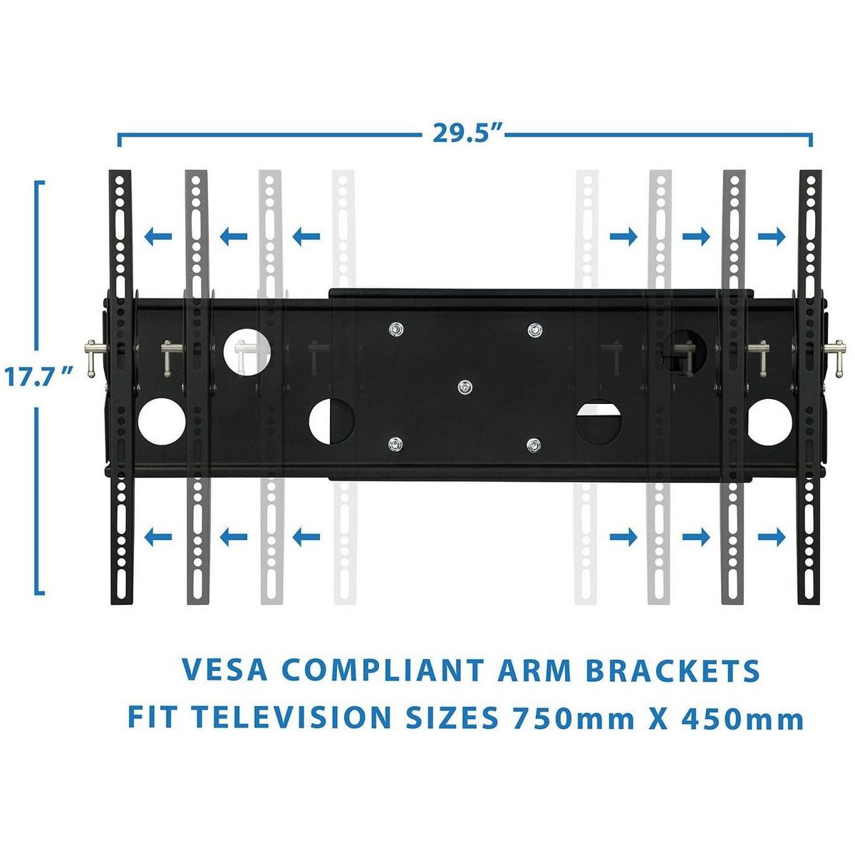 MI-326B holds large screens up to 75" and has a huge range of extending motion. This articulating wall mount is sleek and slim, has a low profile, and can hold up to 175 pounds. Ideal for corner installations, flat wall installations, or solid wall mounts. It can tilt and swivel to provide any seat in the room with an optimized view of the screen. All necessary hardware and assembly guides are included.