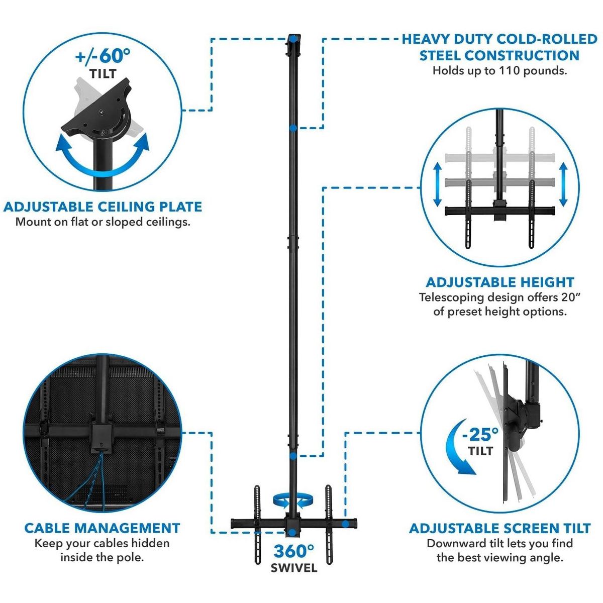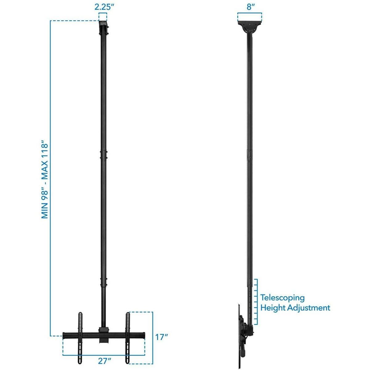 Mount-It! Extra Long Ceiling TV Mount Bracket, 10 Feet Long, Fits 40 - 70 Inch Flat Panel Televisions, Adjustable Height Telescoping Tilt and Swivel