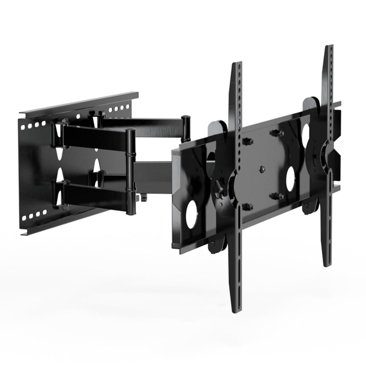 This heavy duty, full motion TV wall mount offers strength and versatility with a maximum extension of 19.6 inches from the wall. The dual arm design is incredibly sturdy and can hold up to 220 pounds. Dual TV safety screws are included to prevent accidental motion. Mounts most brands of TVs quickly and easily with the included hardware.
