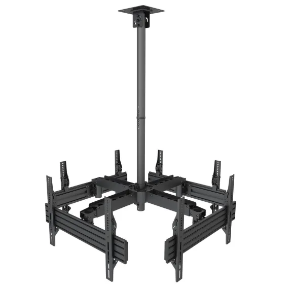 Use this mount to place information or entertainment where it can easily be seen, regardless of wall space. Make content viewable from any point in your facility with this 360 digital signage display mount. Four telescoping mounting arms can hold four screens evenly spaced in a square or rectangular configuration, helping you create the ideal multi-display ceiling mounted solution. Displays can be mounted in landscape or portrait orientation.Each arms adjustable depth allows the installer to set the spacing between each display to meet your applications needs. With 360 of swivel, and 15 degrees of tilt, this mount creates the perfect viewing angle for any application. Four modular pole pieces allow height adjustment between 33.9 inches to 128.1 inches from the ceiling.