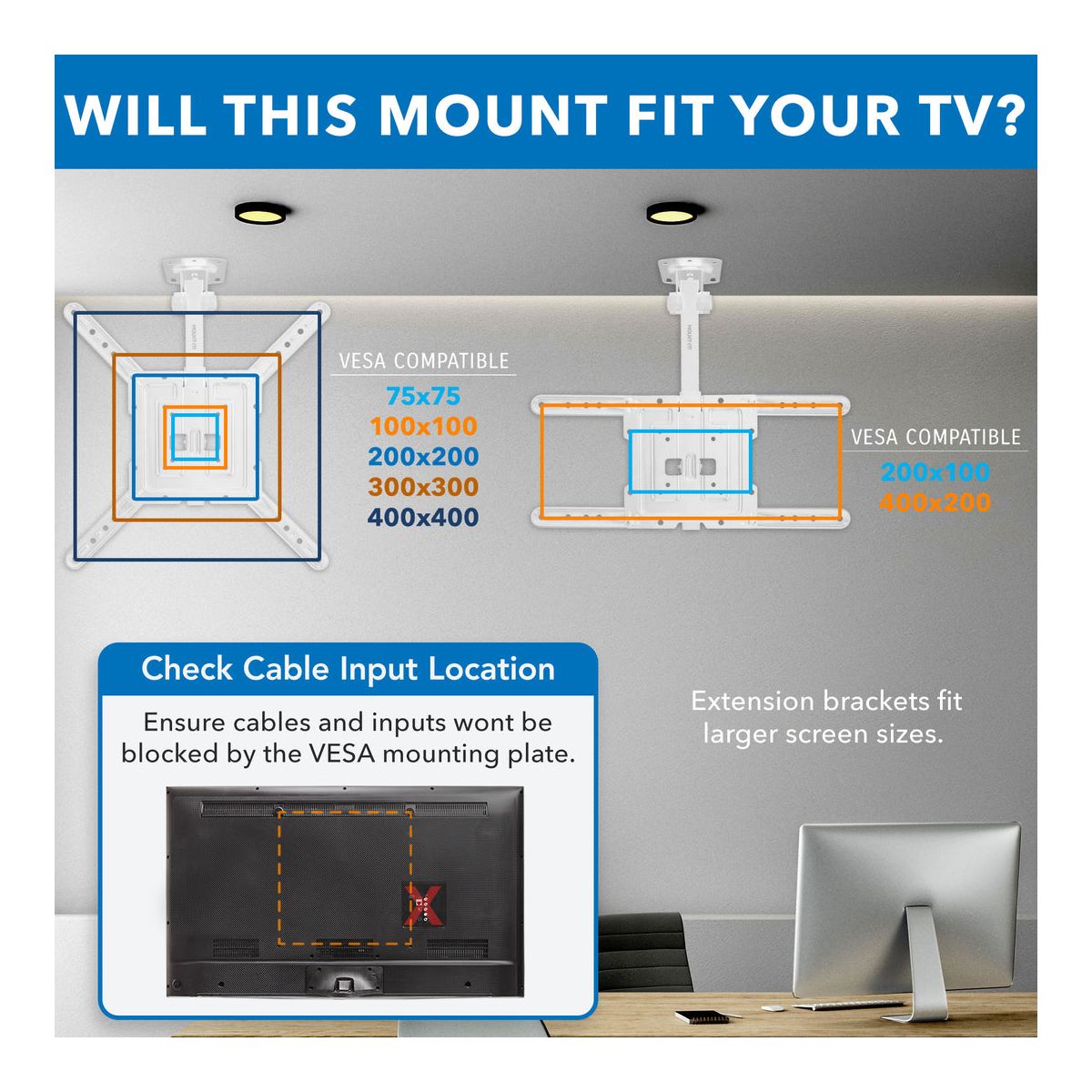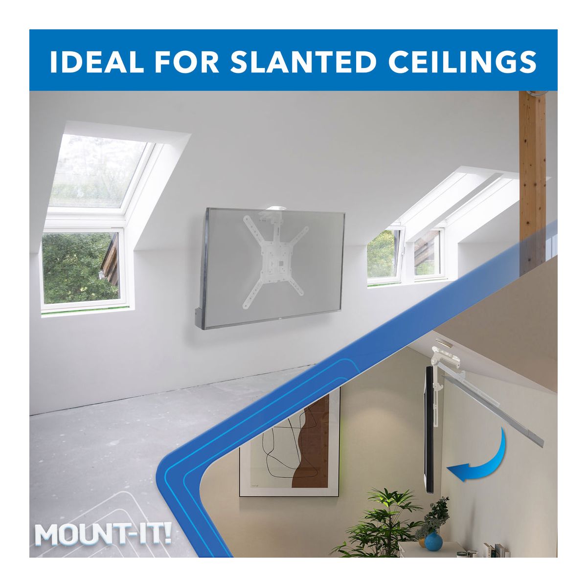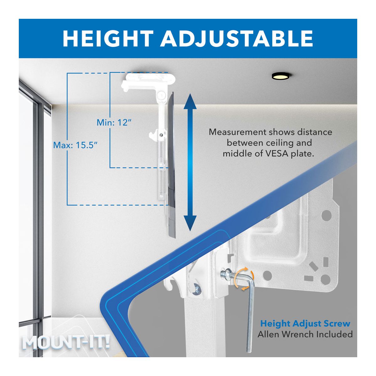 Mount-It! Height Adjustable TV Mount, Folding Ceiling TV Mount for 23 to 55 Inch, Heavy-Duty Bracket for Roof and Slanted Walls, White