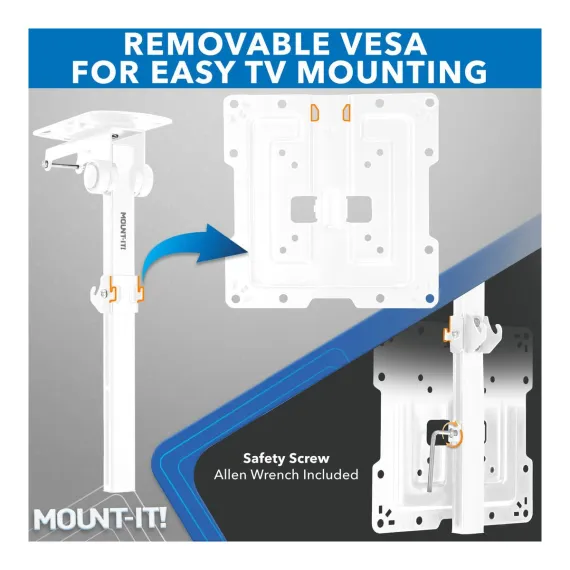 Mount-It! Height Adjustable TV Mount, Folding Ceiling TV Mount for 23 to 55 Inch, Heavy-Duty Bracket for Roof and Slanted Walls, White
