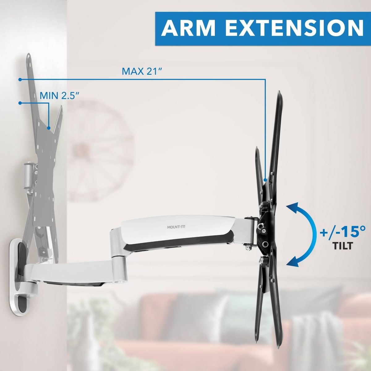 Mount-It! Height Adjustable TV Wall Mount Bracket with Counterbalance Gas Spring Arm, Full Motion Articulating Design Fits Up to VESA 400x400 mm