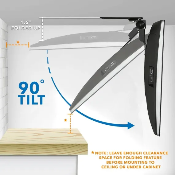 Mount-It! Kitchen Under Cabinet Mount TV Ceiling Mount Folding Bracket, 90 Degree Tilt, Fold Down, Swivel for 13 to 23 inch LCD, TV, LED, Monitor