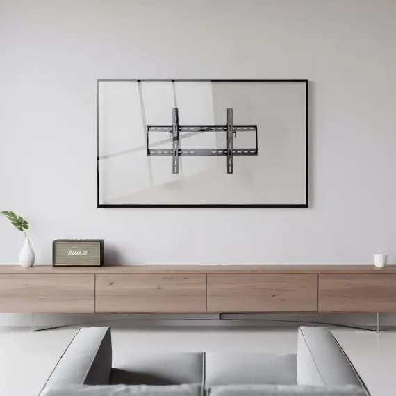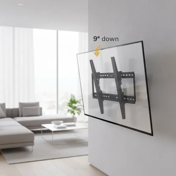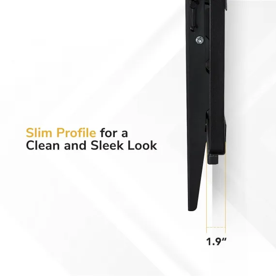 This mount's sleek and slim 1.1" profile will look elegant and visually appealing on your wall. The tilt feature, of up to 15 degrees, allows for more ergonomic and comfortable settings, perfect for your home office or home theater, and can hold large TVs up to 165 lbs. The wall plate allows for quick and easy installation and will support a wide variety of stud applications up to 26" apart. Fits most LCD and plasma displays 100" and smaller and covers VESA patterns 200 x 200 mm to 800 x 400 mm.