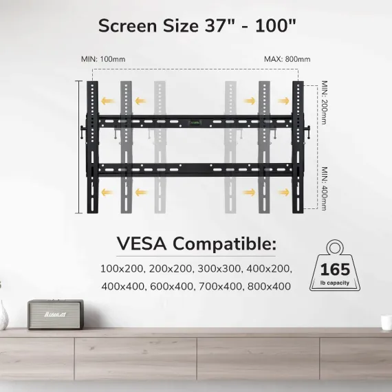 Mount-It! Low Profile TV Wall Mount, 37" to 100" Displays & 165 Lbs. Capacity, Mounting Bracket for Large Flat Screen & Plasma TVs, VESA Up to 800x400