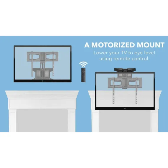 MI-386 fireplace TV mount was designed to solve the typical problem of installing TVs above the fireplace. Do not underestimate the sleek design of our TV wall mount. Our motorized mount can carry TV screens from 37-70" and up to 77 lbs. Though the mount is motor-powered, it moves quietly and fast. The cable management system helps achieve an elegant and clean look while ensuring that no cable accident will happen while you adjust your TV mount.