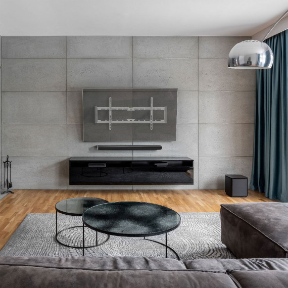 Save valuable space and create the ultimate viewing experience by mounting your TV on the wall. This ultra slim tilting wall mount is made from heavy-duty steel which means it is strong and sturdy enough to fit TVs between 43" and 90" in size and up to 165 lbs in weight. Its very slim 1.9" profile ensures your TV sits almost flush to the wall and the integrated tilting feature helps to reduce glare and optimize the viewing angle. This mount is easy to install and align and comes with automatic spring locks and quick release cords that allow the TV to be quickly removed when needed. to perfectly position the TV after installation, micro leveling adjustments are possible. this TV mount is also suitable for video wall installations. The elegant design in white and the included decorative side covers ensure a clean and neat look especially on white and light colored walls.