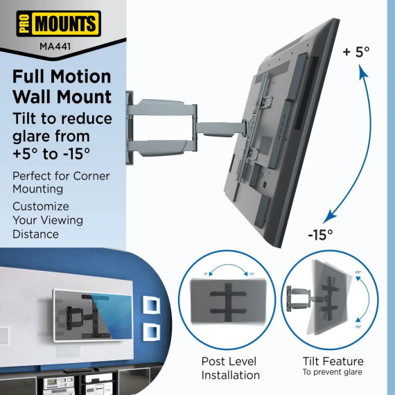 ProMounts Articulating TV Wall Mount for 32”-65” Holds up to 70lbs (MA4401)