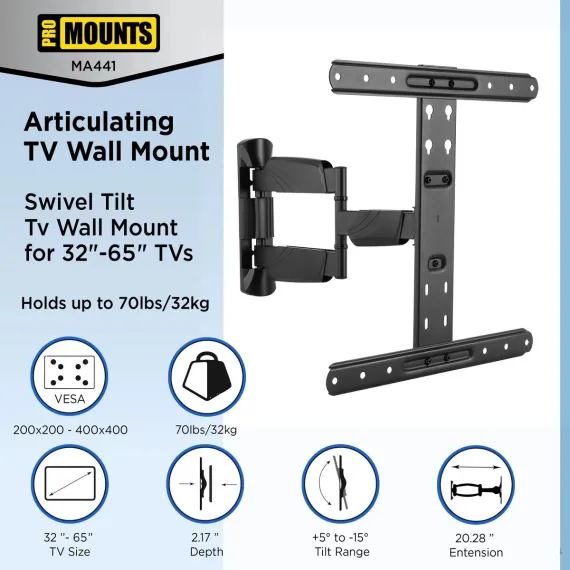 ProMounts Articulating TV Wall Mount for 32”-65” Holds up to 70lbs (MA4401)