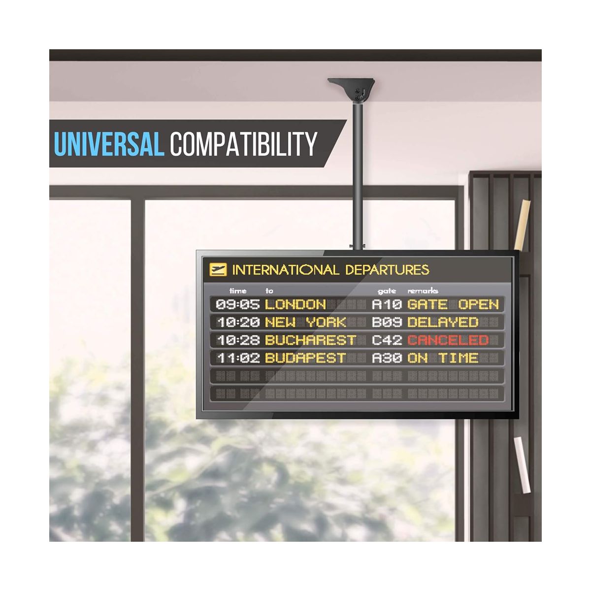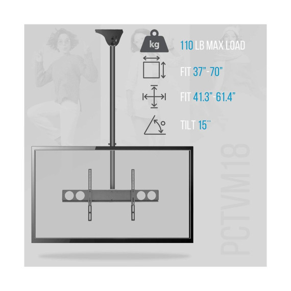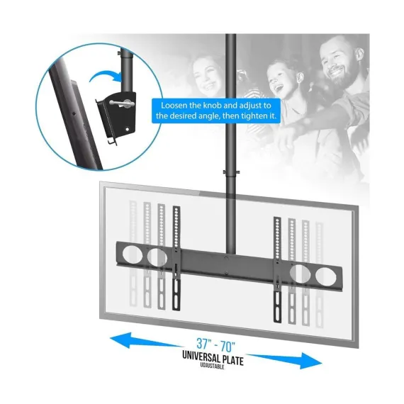 The Pyle PCTVM18 TV Ceiling Mount is the perfect solution for mounting your television securely and stylishly. Designed to fit screens from 37 to 70 inches, this mount is compatible with most HDTVs, LED, LCD, Plasma, and Smart TVs. The adjustable height feature allows you to set the perfect viewing angle, whether on a flat or pitched ceiling. Built with durable steel and featuring integrated cable management, this mount ensures a clean and professional look in any room. Ideal for home theaters, offices, and commercial spaces.