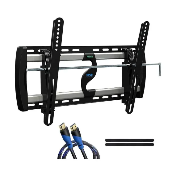 The Pyle TV Wall Mount Bracket, model PYWM24, is a durable and versatile solution for mounting your flat-screen TV. Designed to fit 26" to 52" screens, this mount supports up to 110 lbs, making it perfect for various TV models. The tilt feature allows for easy angle adjustment to reduce glare and improve viewing comfort. Constructed from heavy-duty steel, this mount is built to last, with a space-saving design that keeps your TV securely in place while providing easy access to outlets and cables.