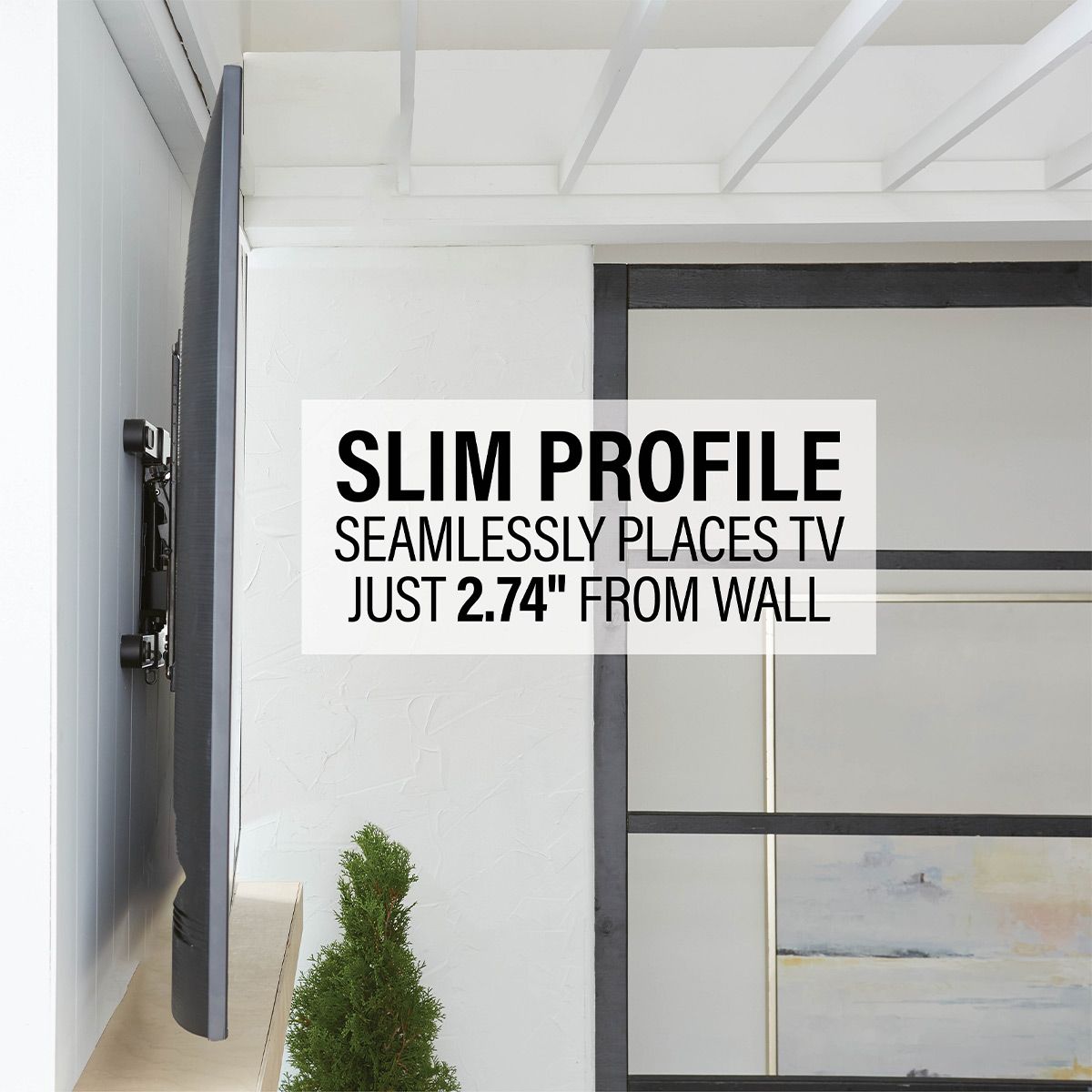 •Slim profile seamlessly places TV just 2.74" from wall and blends with TV dcor