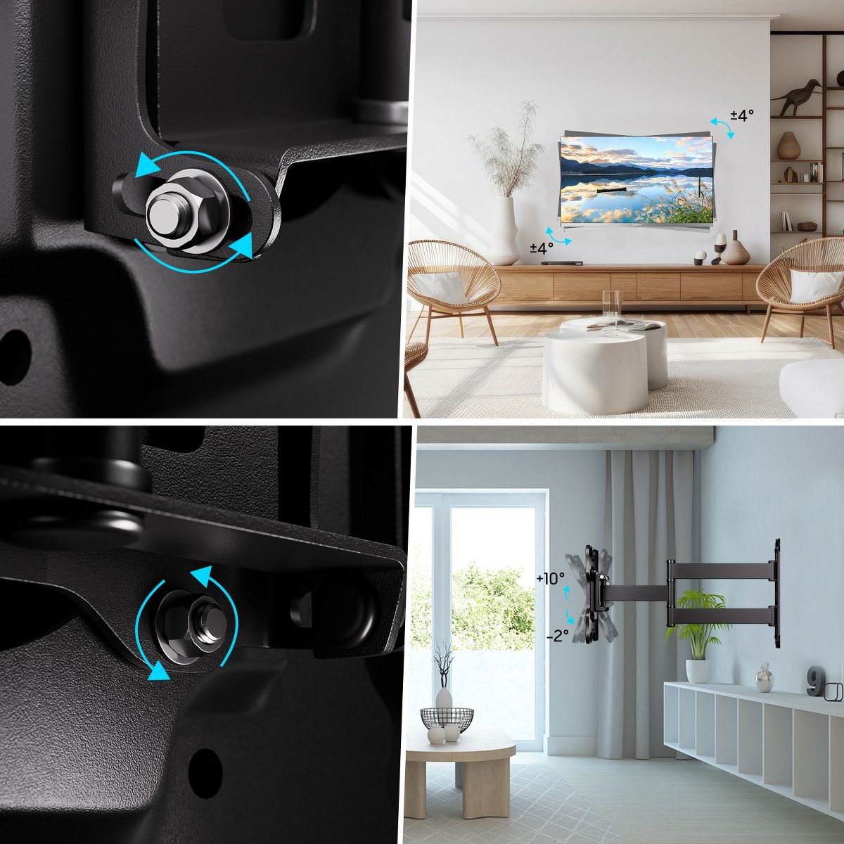 The Sylvox Full Motion TV Wall Mount fits 17"–45" screens and supports up to 70 lbs. With ±90° swivel, +10°/–2° tilt, and ±4° level adjustment, it offers flexible viewing from any angle. Compatible with VESA 100x100 to 200x200, it extends 19.6" and retracts to 1.85" to save space. Built from durable steel for safety and stability. Easy to install on wood studs, concrete, or brick. Includes 1-year warranty and reliable customer support.