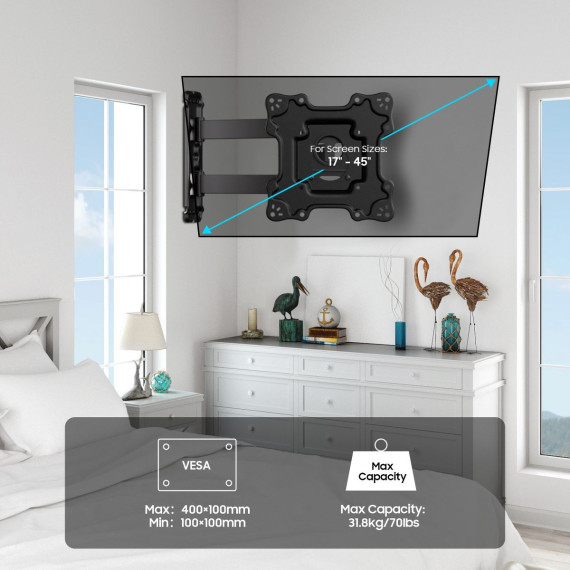 Sylvox Full Motion TV Wall Mount for 17–45" TVs – Swivel, Tilt, Extendable Arm, 70 lbs Load, VESA 100x100–200x200mm