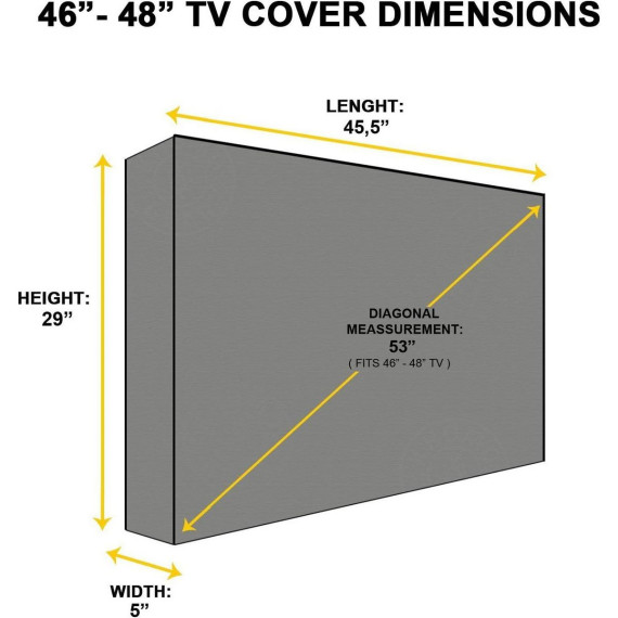 Weatherproof Outdoor TV Cover for Flat Screens - Black Protective Cover, Waterproof & UV Resistant for 46 to 48" Screens