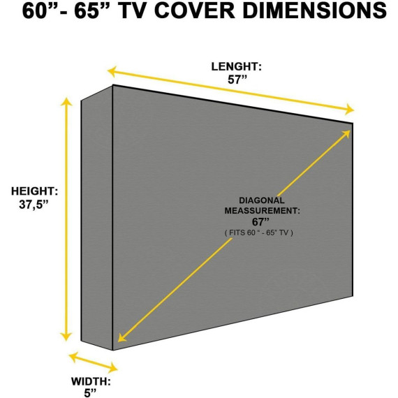 Weatherproof Outdoor TV Cover for Flat Screens - Black Protective Cover, Waterproof & UV Resistant for 60 to 65" Screens