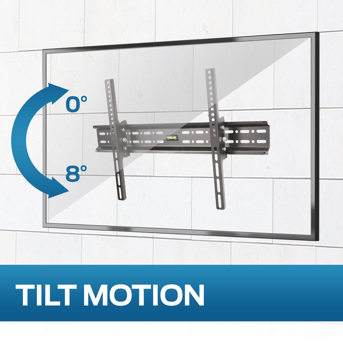 We all want a convenient way to set up our flat-panel HDTVs without tearing out our walls. With the Xtreme Tilt Motion TV Wall Mount For 42-90 Inch TVs, you can manage your home media setups without discussing wall repair. Our mount can support flatscreen TVs ranging from 42 to 90 inches and can hold up to 132 pounds. It will be able to tilt up to 8 degrees and down to 0. The heavy-gauge steel construction is durable and provides for a solid foundation for any TV you decide to connect. A precision mounting with magnetic levels allows you to get the most accurate position when installing it into your wall. Our mount meets the VESA mounting requirements of 50x50 through 800x600, giving you a wide range to attach and install it. Get your TV situated the right way with the Tilt Motion TV Wall Mount For 42-90 Inch TVs from Xtreme.