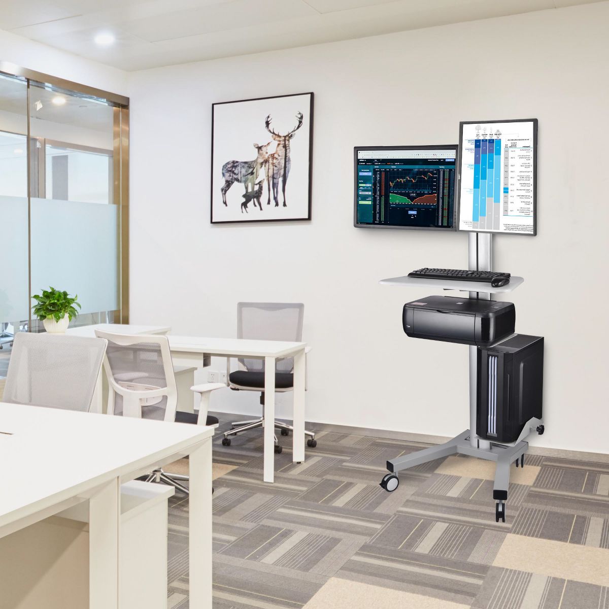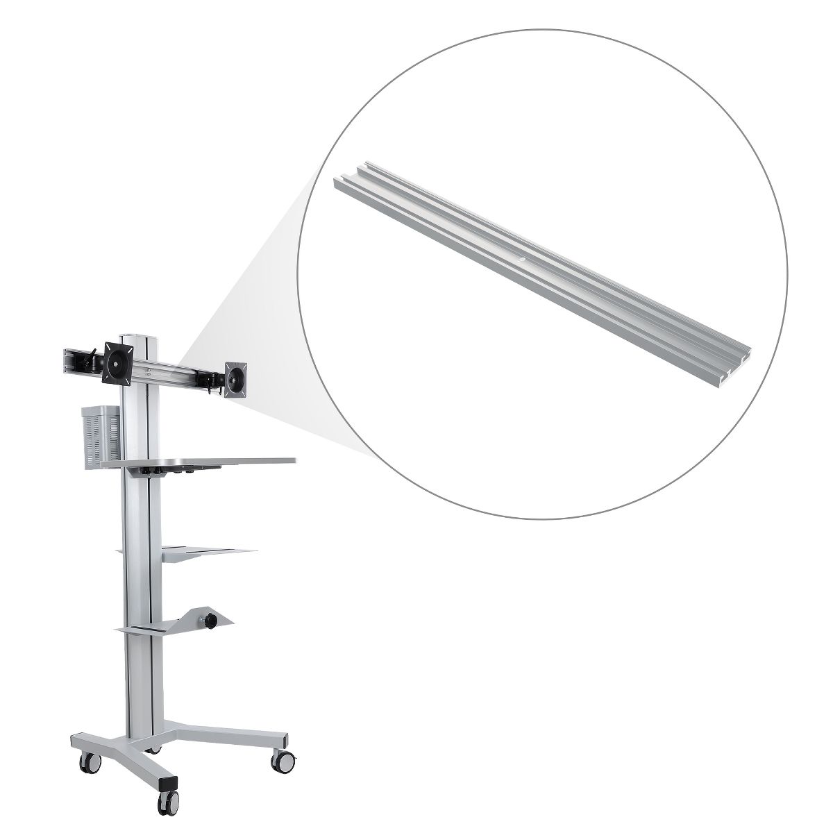 Yescom Monitor Holding Pole Dual Monitor Arm for PC Mobile Cart Medical Trolley Silver