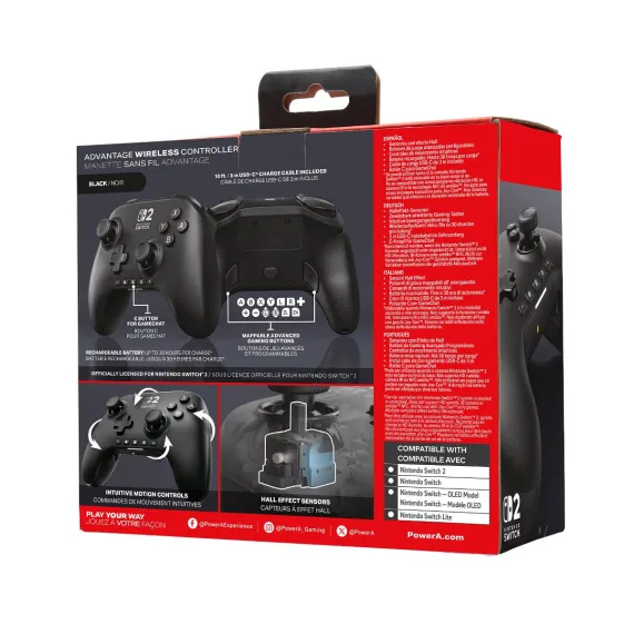 Officially licensed by Nintendo, the PowerA Advantage Wireless Controller for Nintendo Switch 2 combines design and performance. The Hall Effect thumbsticks prevent stick drift, increasing precision and longevity. Program two mappable Advanced Gaming Buttons on the fly and access GameChat features instantly with the integrated C Button. Enjoy immersive motion controls for an intuitive way to aim, steer, fly and more. Built for extended play with up to 30 hours of battery life, a 10 ft. (3m) USB-C cable and a comfortable ergonomic design. Backed by a 2-year limited warranty.
