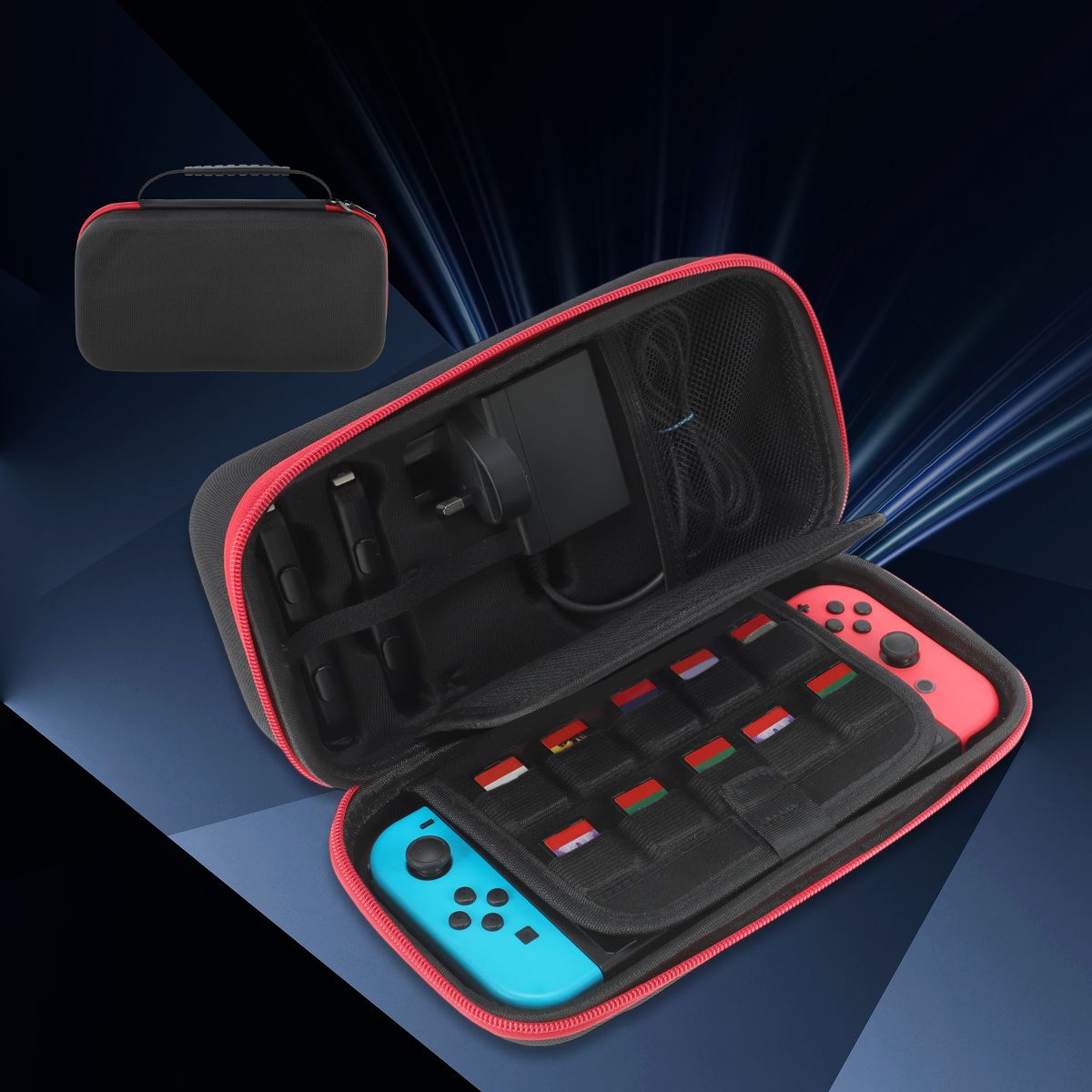 - Accommodating other consoles as well, this case includes an additional pad for stable storage for Nintendo Switch and OLED consoles in larger spaces. The adapter and joypad storage section is suitable for the Switch version too.