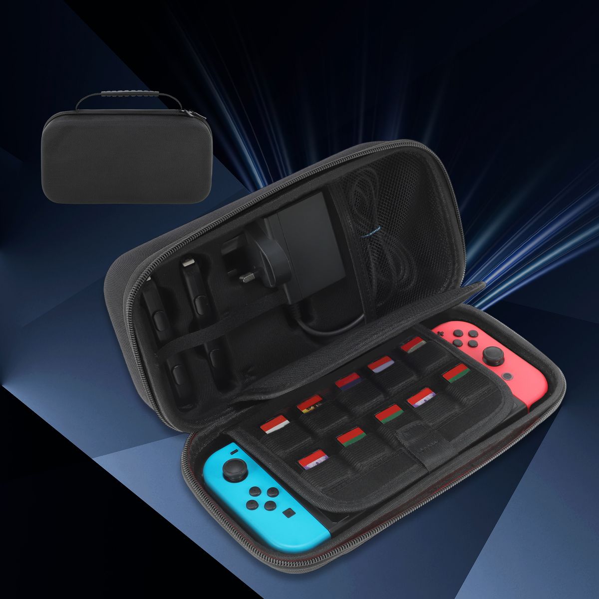 - Accommodating other consoles as well, this case includes an additional pad for stable storage for Nintendo Switch and OLED consoles in larger spaces. The adapter and joypad storage section is suitable for the Switch version too.