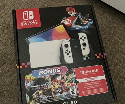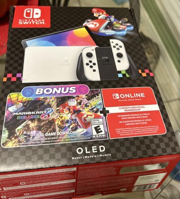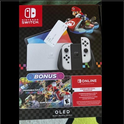 Nintendo Switch™ - OLED bundle includes a console, the Mario Kart™ 8 Deluxe game, and 12 months of Nintendo Switch Online.