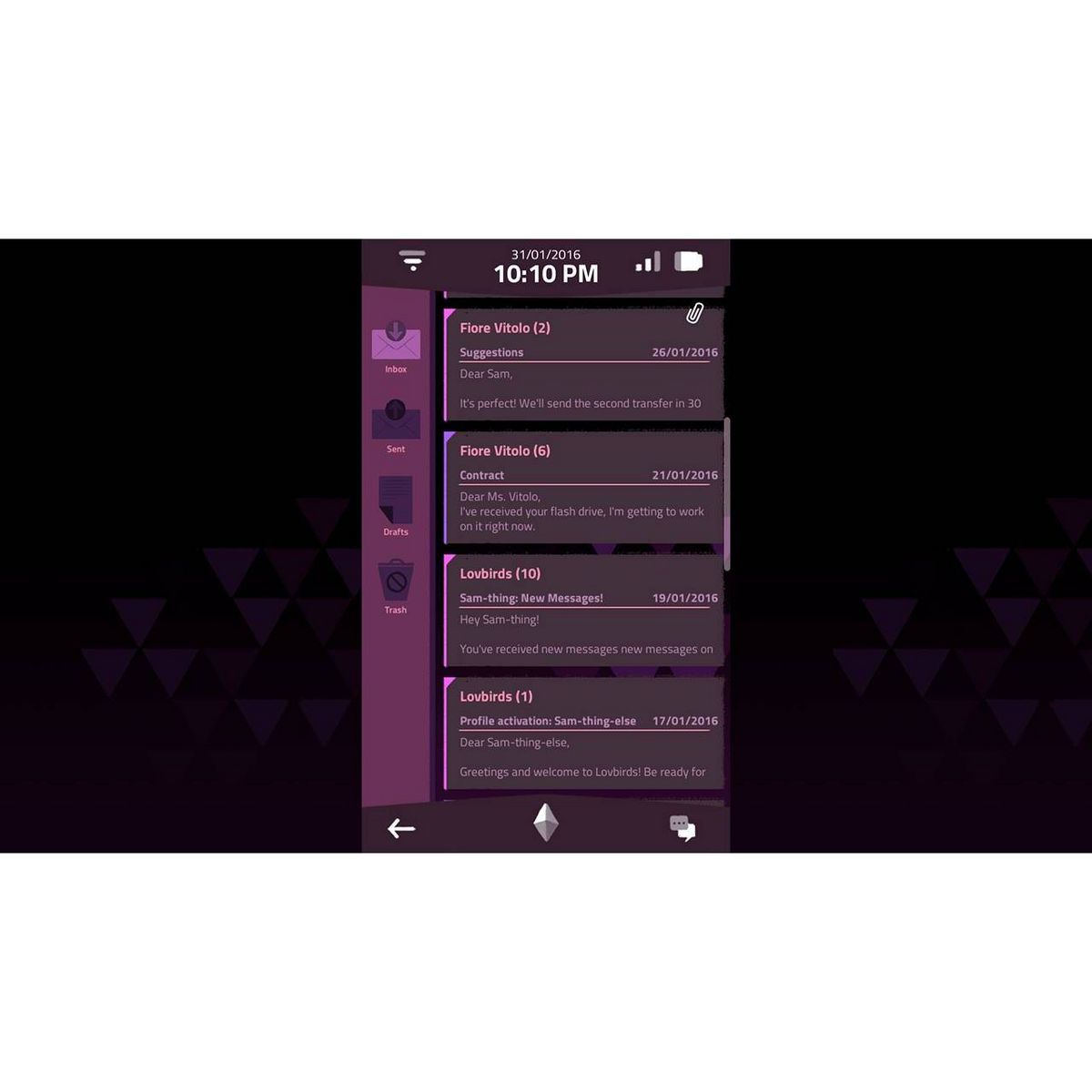The game takes the shape of a narrative investigation: you have to search the phone’s text messages, pictures and applications, in order to learn about its former owner. Through this phone, you uncover Sam’s life, friends, family and relationships, until the evening when they turn 18 and mysteriously disappear.