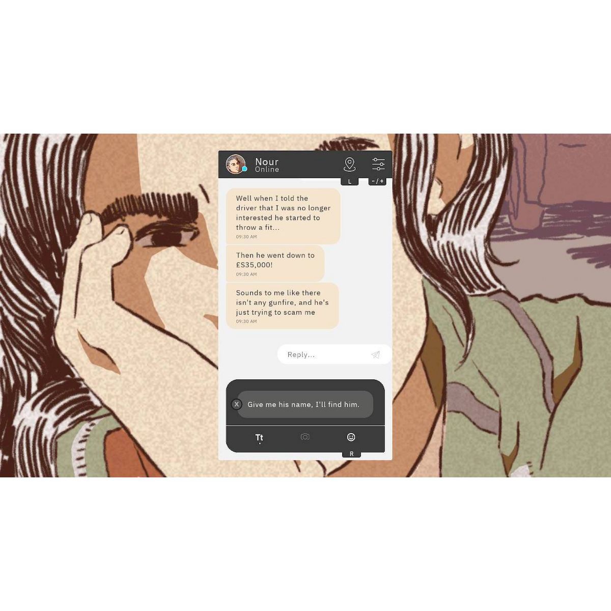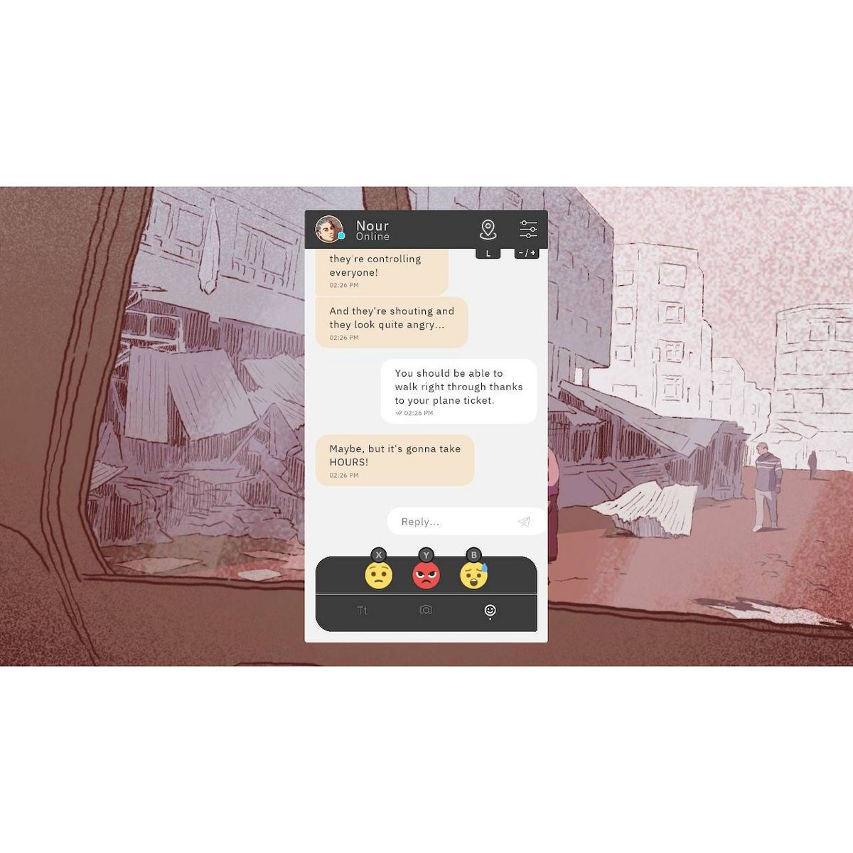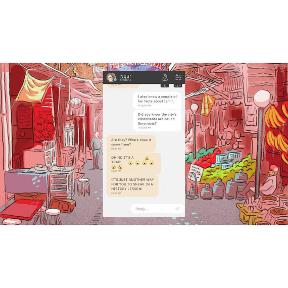By reading instant messages and choosing response options, players help Nour overcome the hardships she will encounter.