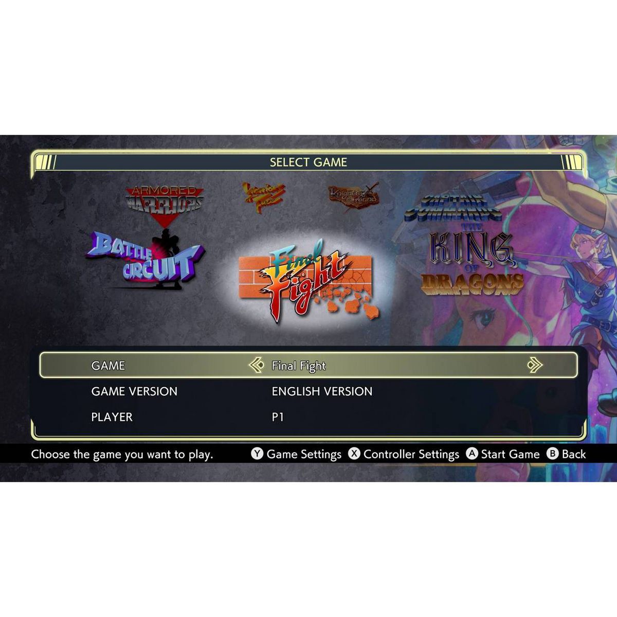 Games included: Final Fight, Captain Commando, The King of Dragons, Knights of the Round and Warriors of Fate, as well as two games that were previously unavailable on consoles: Armored Warriors and Battle Circuit!