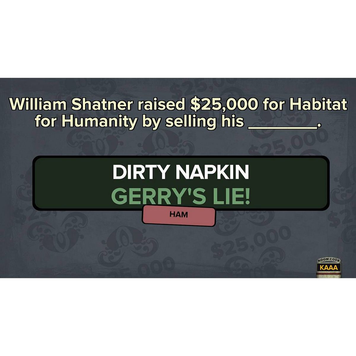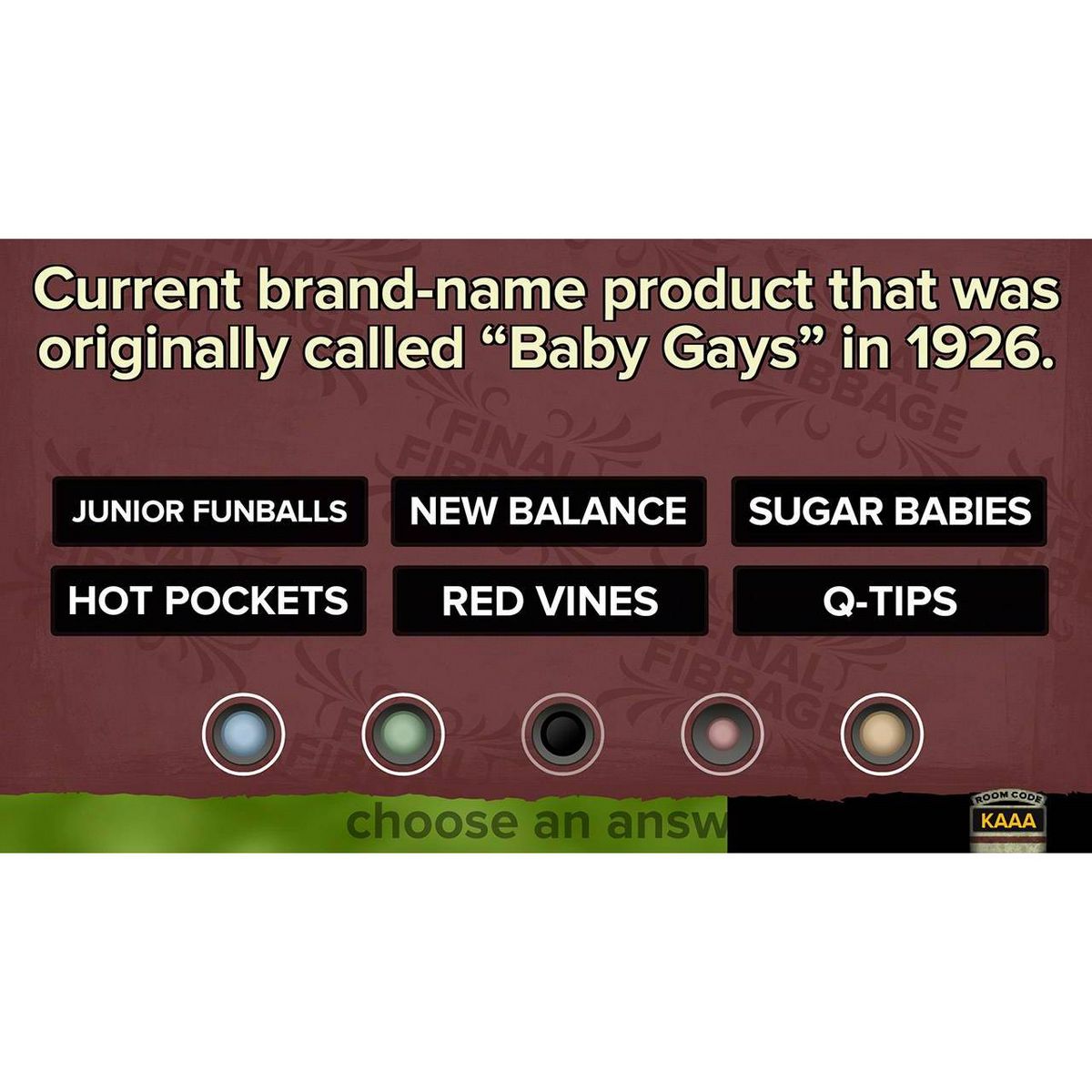• Hundreds of questions, including “Final Fibbage” questions.