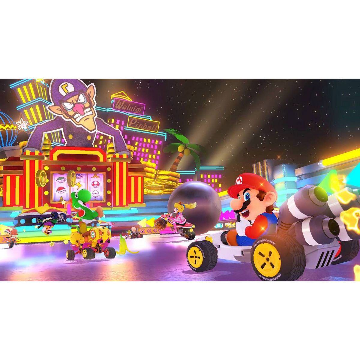 Burn rubber across Mushroom Kingdom raceways—underwater, in the sky, upside-down in zero-g, and past the finish—for the win! Rev up for local multiplayer, online tournaments*, a revamped battle mode, and more! Plus, get double the tracks with the included Mario Kart 8 Deluxe – Booster Course Pass DLC! Race across 48 more courses like Wii Maple Treeway, DS Waluigi Pinball, and Tour Paris Promenade. Content will release in 6 waves of 8 courses until the end of 2023.