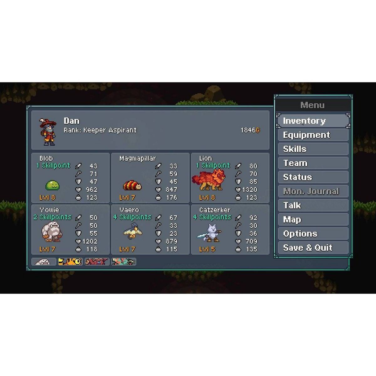 Monster taming meets metroidvania. Collect, train and battle monsters in a lovely side-view pixel world.