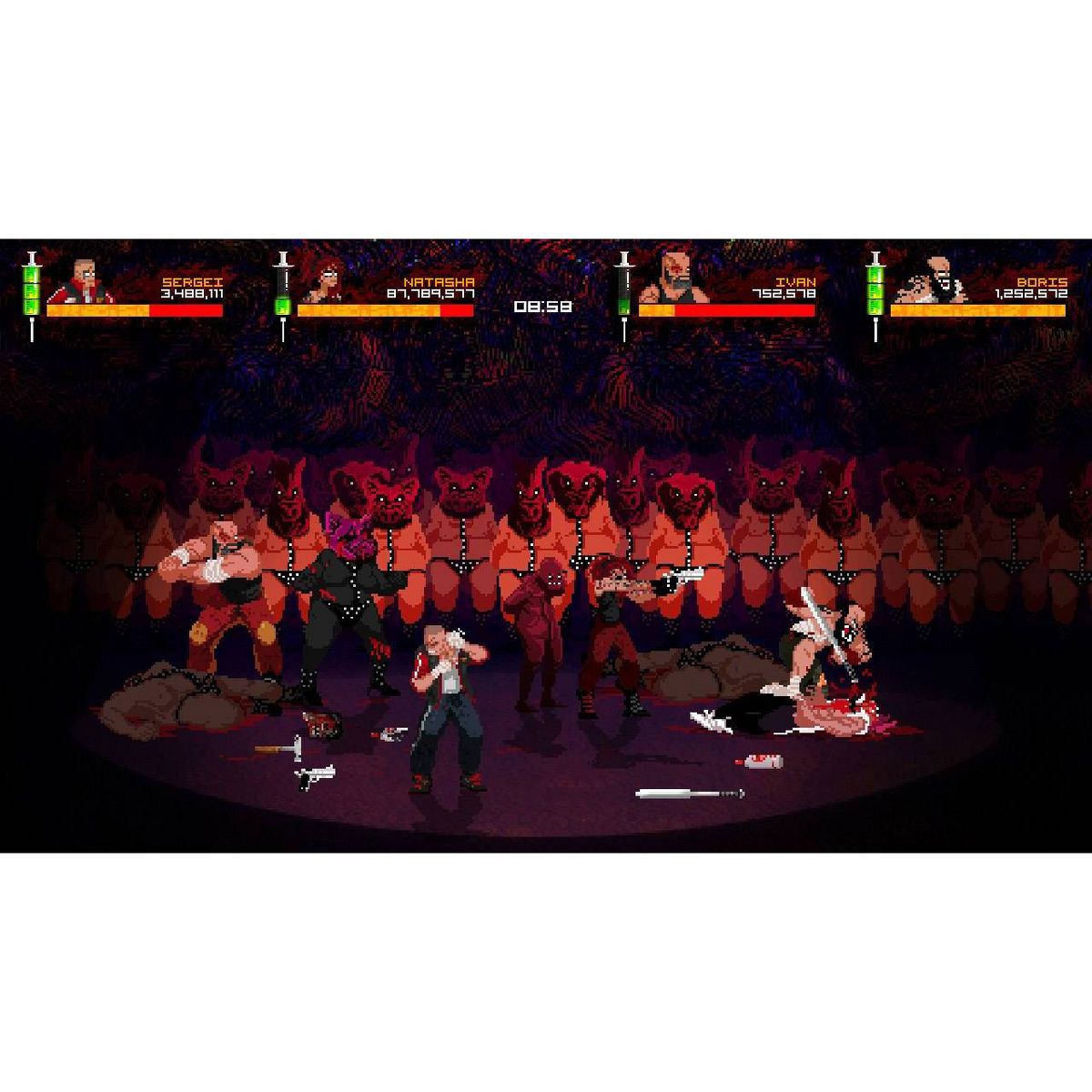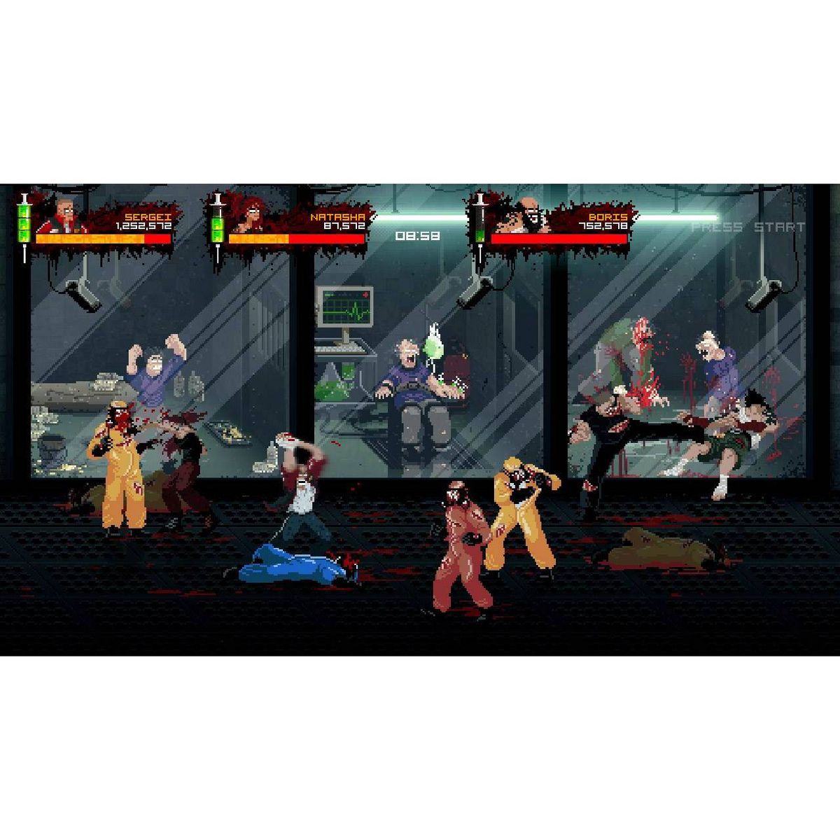 Mother Russia Bleeds is an ultra-violent co-op brawler overflowing with an unmistakable style and unforgettably brutal action for up to four players at once. Set in an alternate U.S.S.R, the story centers on a desperate crew of imprisoned street fighters that must overcome an oppressive criminal authority and forced drug addictions through any means necessary. Battle solo or alongside friends in an exceptional story mode campaign or harden your resolve in the savage Survival Mode.