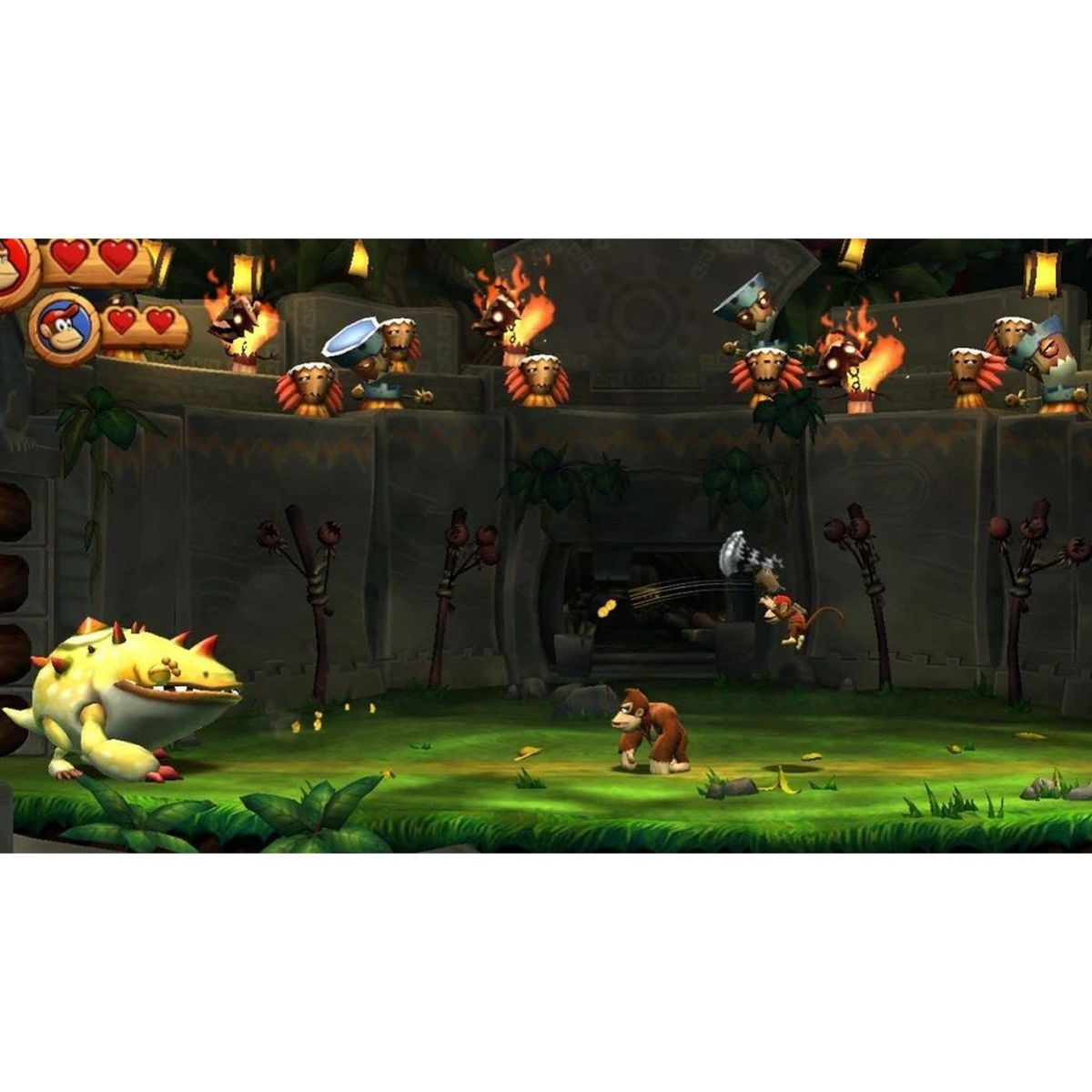 Donkey Kong's smash hit return to plat forming is being rebuilt from the ground up and optimized for portable play on the Nintendo 3DS system. Donkey Kong Country Returns 3D will launch in summer of 2013 with all of the ground pounding, barrel rolling, plat forming action of the original brought to life with stunning 3D visuals. Over 70 levels of banana hoarding fun featuring Donkey Kong and Diddy Kong. Run, jump, climb and defeat enemies through diverse environments until you retrieve Donkey Kong's stolen banana hoard. Lush, layered side scrolling levels come to life in stunning 3D. Rebuilt and optimized for portable play on the Nintendo 3DS system. More details to come. Use Parental Controls to restrict 3D mode for children 6 and under.