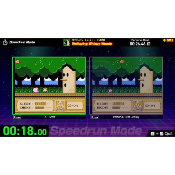 Test your speedrunning skill in over 150 challenges! Each one relives a memorable moment from one of 13 NES TM games*, including classics like Super Mario Bros.TM 3, The Legend of ZeldaTM, Donkey KongTM, and MetroidTM. Start small by seeing how quickly you can blaze through the first level of Super Mario Bros., and work your way up to defeating Meta-Knight in a one-on-one sword fight in Kirby’s AdventureTM Hone your skills in practice and see if you have what it takes to be a champion—the tougher challenges may truly test your limits!