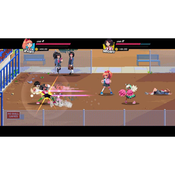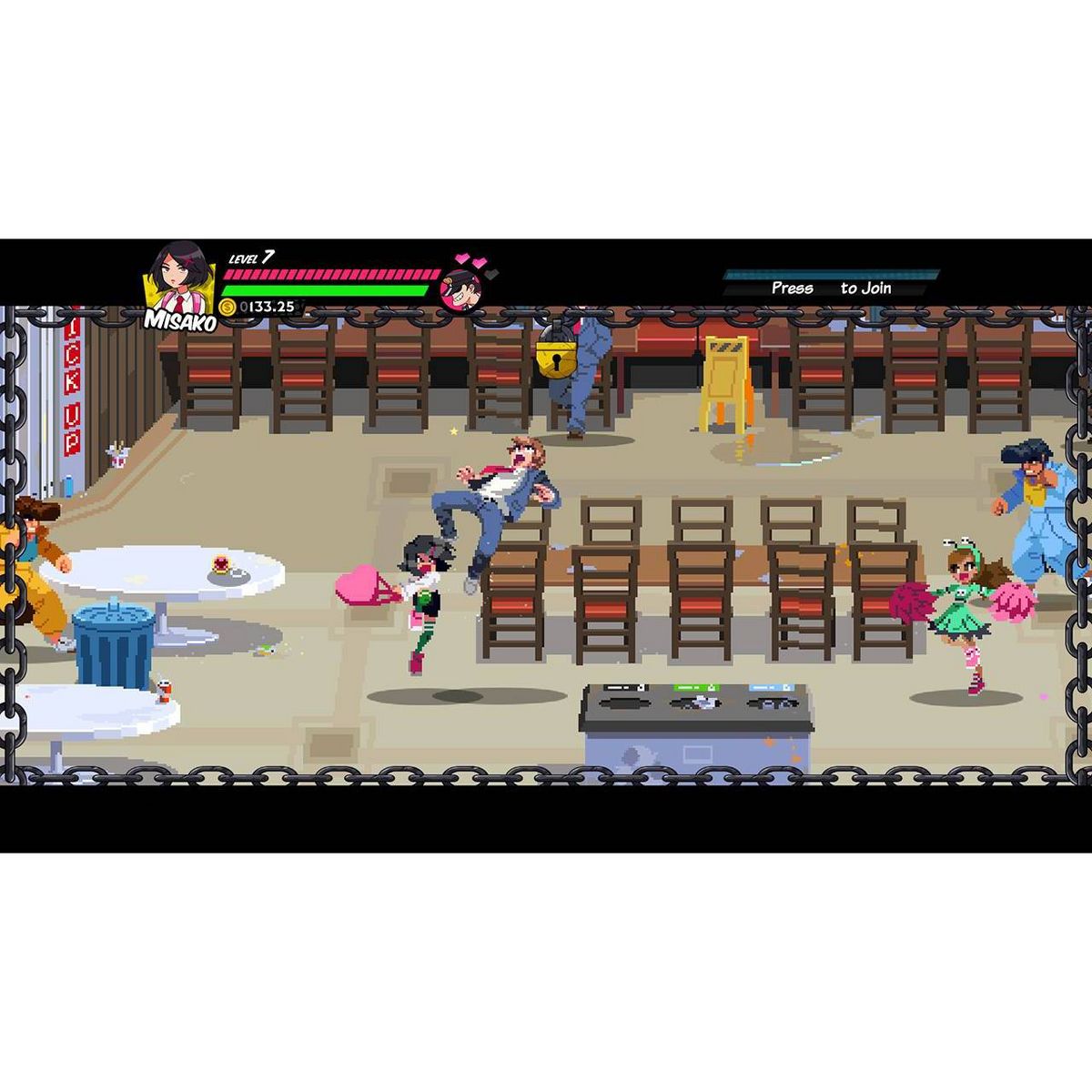 There's trouble once again on the mean streets of River City, but this time the boys are in over their heads! In this all-new entry in the legendary beat-'em-up series, hot-blooded heroes Kunio and Riki have been captured, leaving it to their hard-hitting girlfriends, Kyoko and Misako, to serve up some payback. As you punch and kick your way across town - either solo or with a friend in local co-op - you'll gain new skills, chow down on power-ups, wield an assortment of weapons, and unleash an arsenal of combos, throws, and special attacks that will leave the bad guys crying for mama - all in outrageous 16-bit style! The awesome action is punctuated by manga story panels, anime cutscenes, and an epic synth-pop soundtrack. It’s an old-school rumble for a new generation!