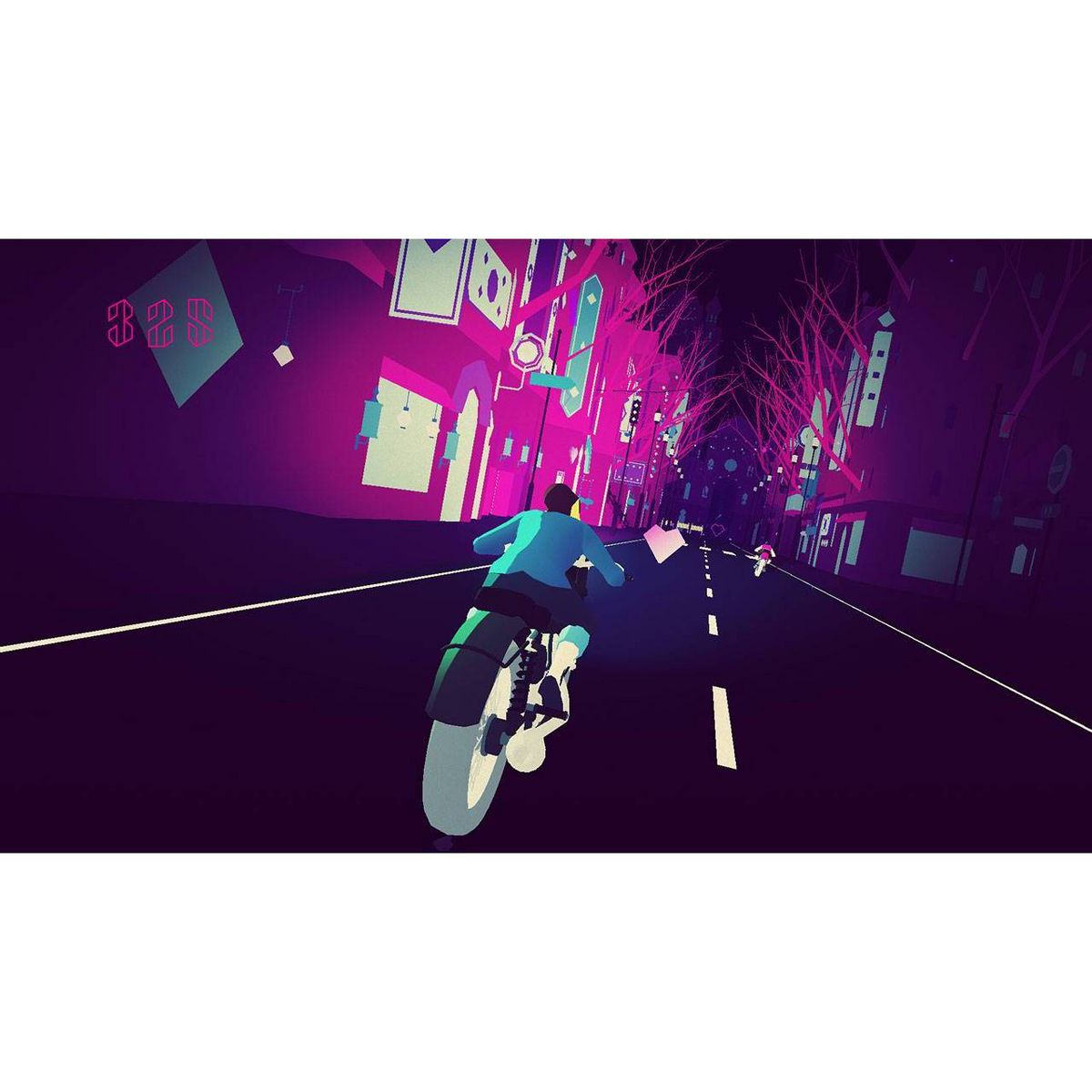 Sayonara Wild Hearts is a dreamy arcade game about riding motorcycles, skateboarding, dance battling, shooting lasers, wielding swords, and breaking hearts at 200 mph.