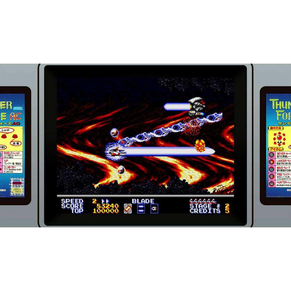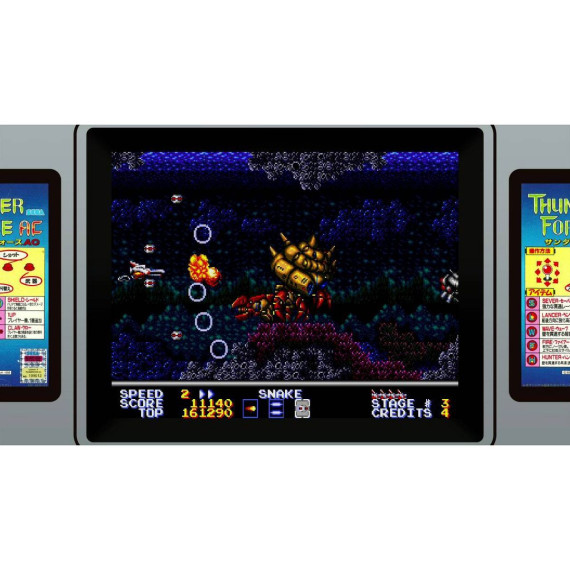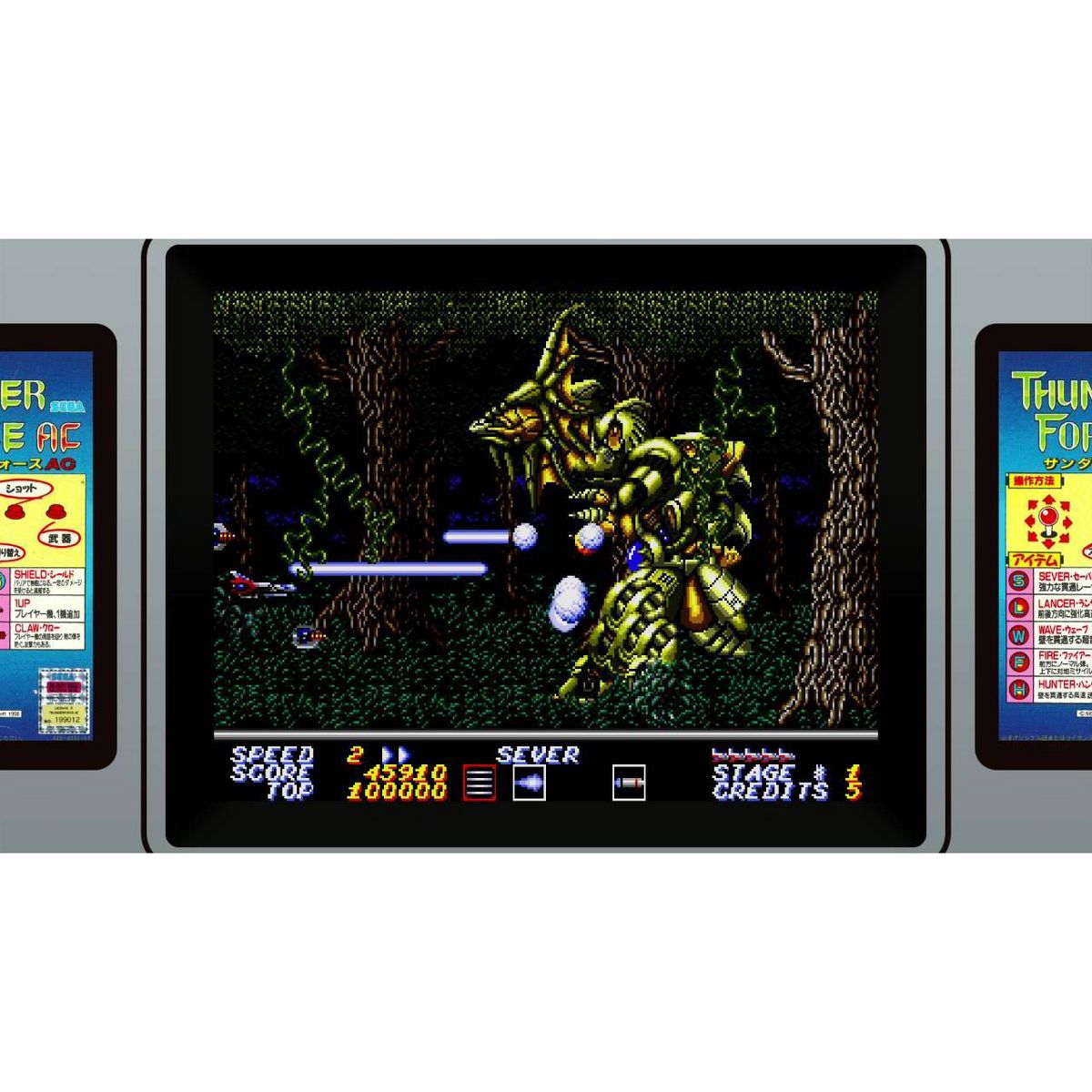 Originally released in arcades, the SEGA AGES version lets you relive those memories with an optional arcade cabinet display replete with ambient sounds. There are some surprises for seasoned Galaxy Federation pilots though, as you can now unlock ships from other Thunder Force games, and test your top scores in the online rankings. Rookie pilots need not fear though: this version also boasts save states and a Kids Mode to help you on your mission.