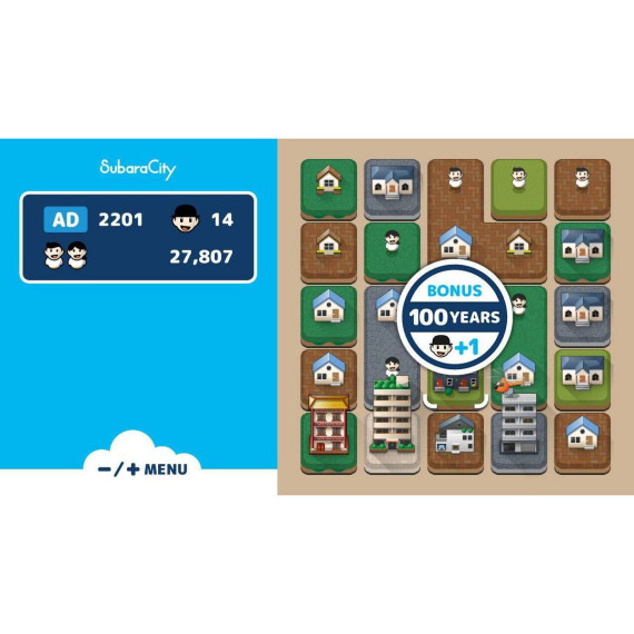 The buildings on the blocks can be combined into larger, and special, buildings. It’s a simple rule but there are hidden complexities, and as the years pass each move plays an important role. Your decisions will decide the city's future - develop your city step-by-step to make a ""SubaraCity""!
