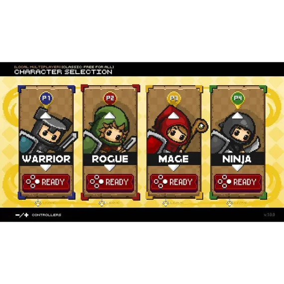 Choose a character and battle it out on tight top-down maps, filled with angry monsters and shiny loot. Various weapons scattered across each map can be picked up and will help you blasting away your opponents, including bows, magic staffs, bombs, rockets and more!