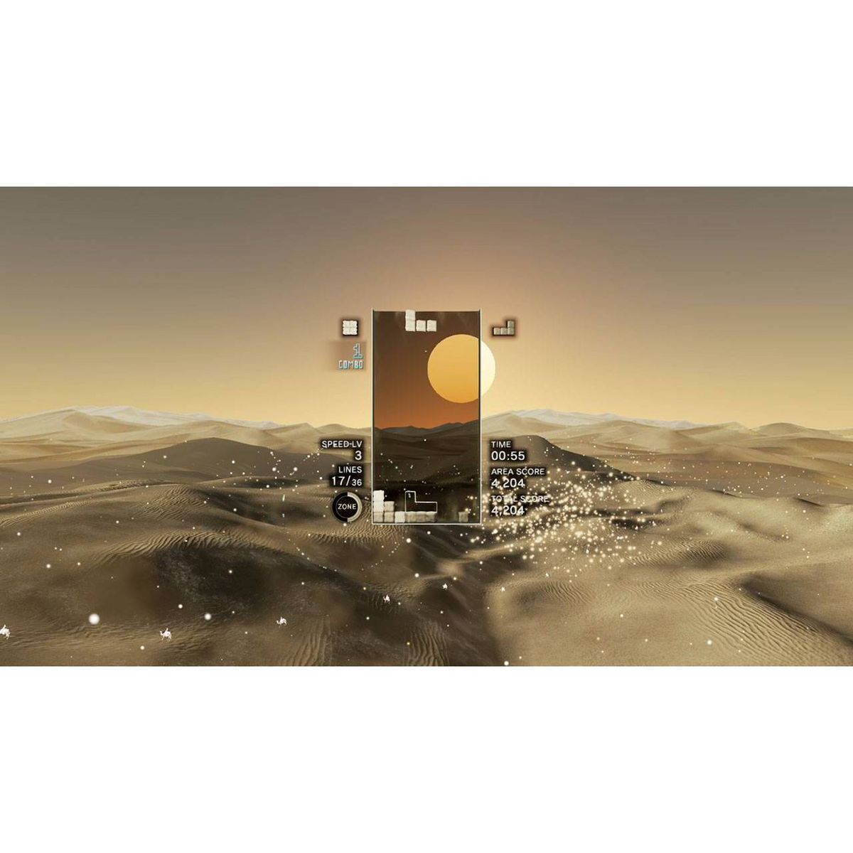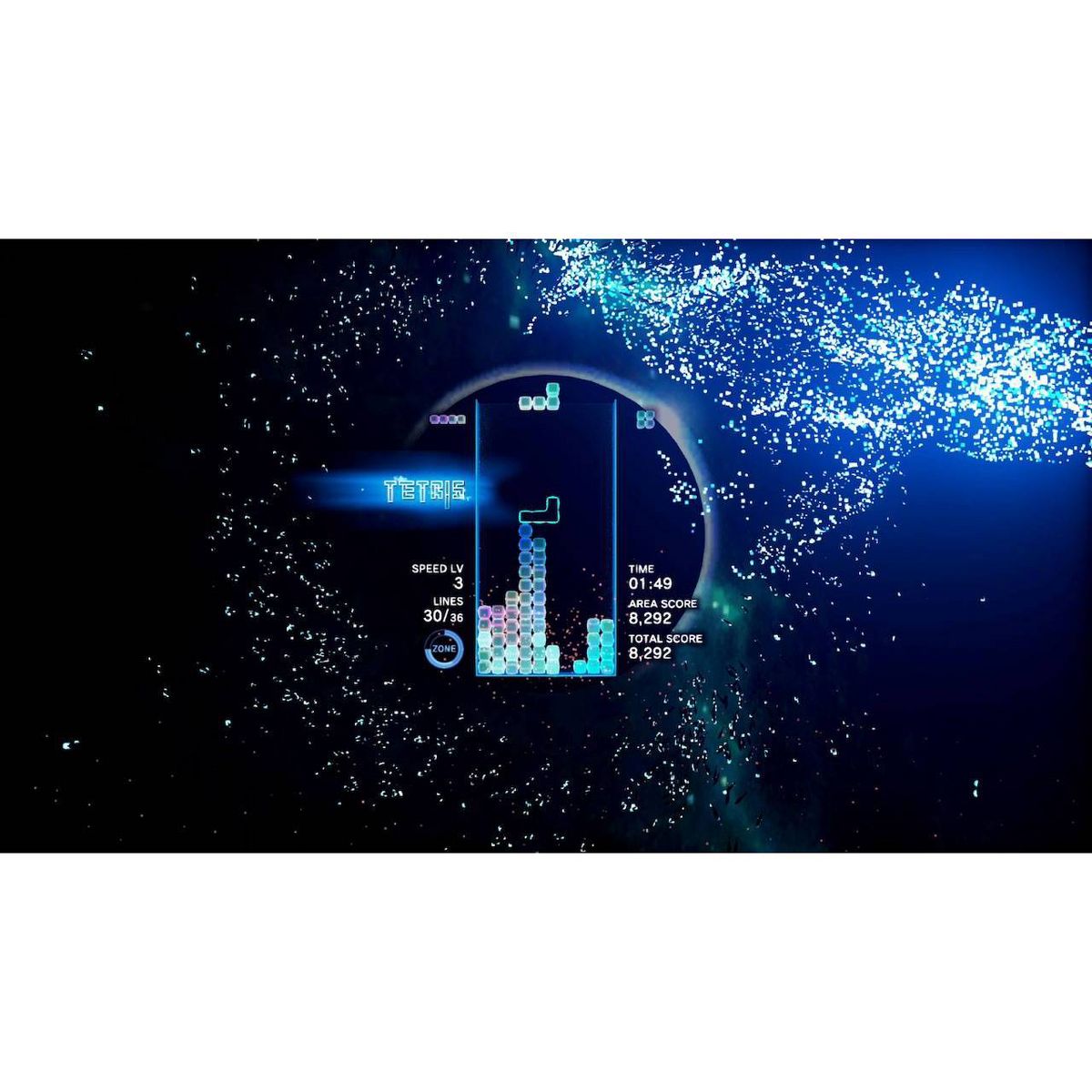- Includes the “Zone” mechanic, where players can stop time (and Tetriminos falling) by entering “the Zone” and either get out of a sticky situation that could otherwise lead to “Game Over,” or rack up extra line clears for bonus rewards.