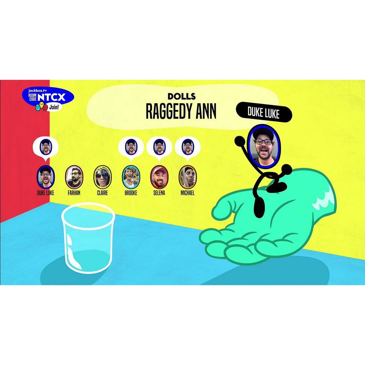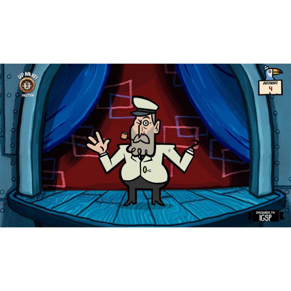 Created & Developed by Jackbox Games, Inc. Game and Software © 2019 Jackbox Games, Inc. All rights reserved. Jackbox Games, the Jack head logo, and the Jackbox Games logo are registered trademarks of Jackbox Games, Inc. Trivia Murder Party, Role Models, Joke Boat, Dictionarium, Push the Button, and Party Pack are trademarks of Jackbox Games, Inc. All other trademarks and logos are the property of their respective owners.​