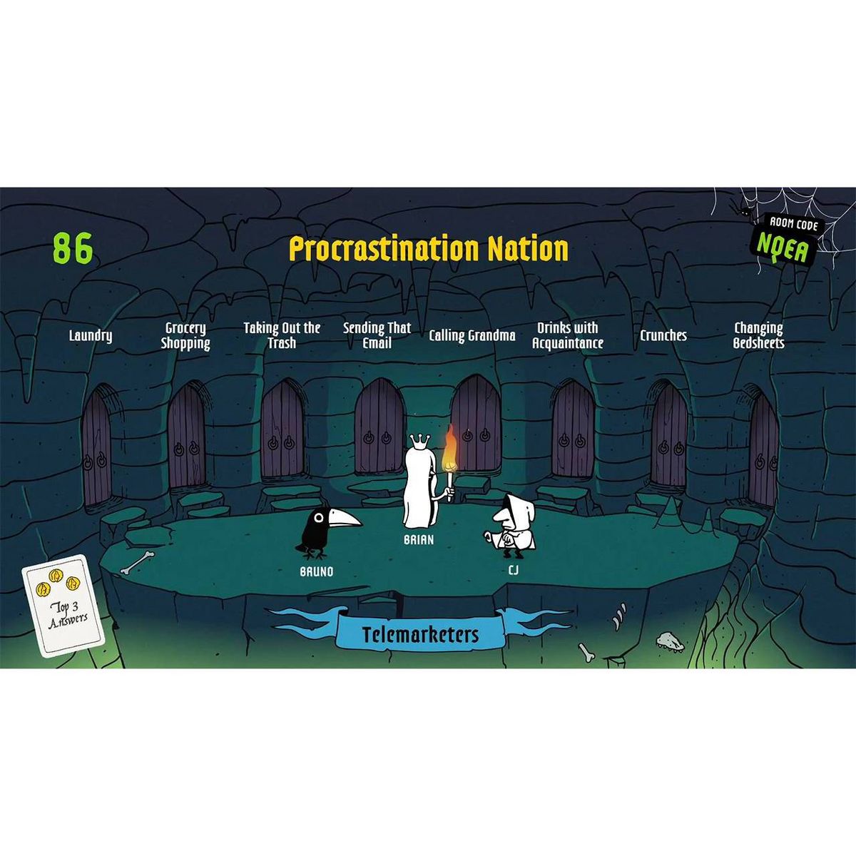 The Poll Mine (2-10 players) - A survey game that’s all about YOU! Split into teams and see who can escape from the witch’s lair! Players individually rank their choices to a difficult question, then must guess how the group answered as a whole. How well do you know your friends?!