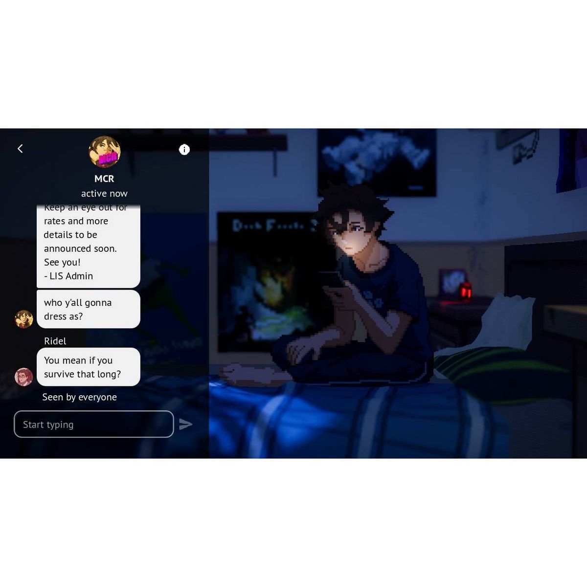 Explore the depths of social media where your likes and comments may pose consequences. Scroll through social posts, emails, webpages, and more on your in-game smartphone, where you might discover hints and clues about the people and world around you. Chat with your friends, classmates, and even strangers.