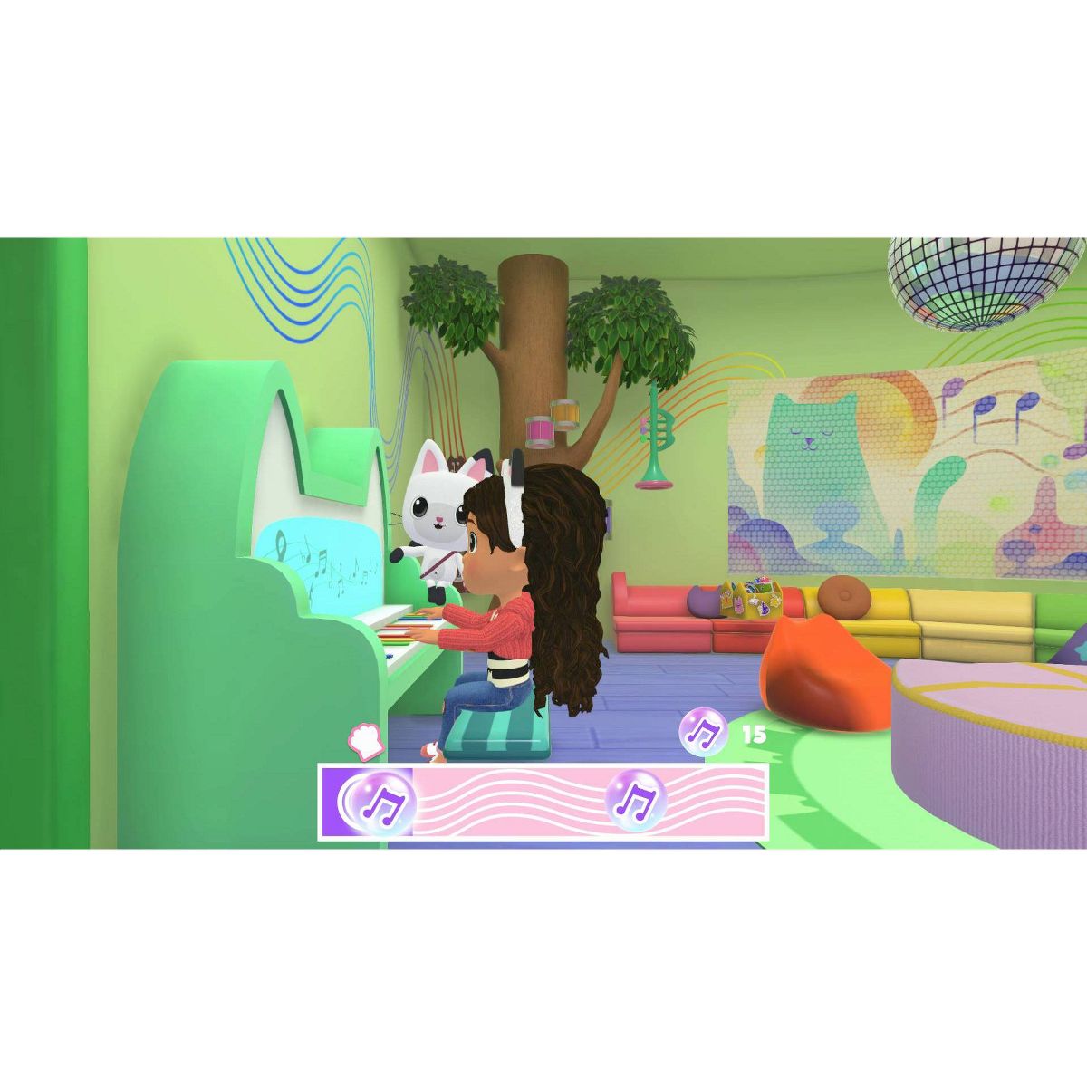 Enjoy challenges and minigames solo or with a friend in local co-op mode to find items for the party and cute outfits to customize Gabby.