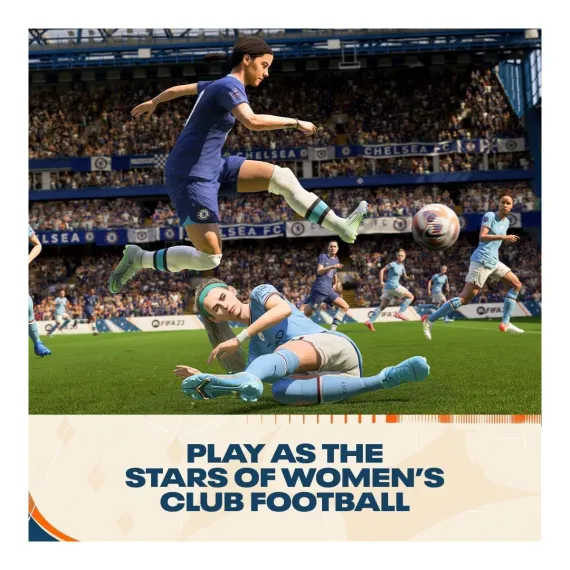 FIFA 23 from EA Sports for the Sony PS4 brings The World's Game to the pitch, with both men's and women's FIFA World Cup tournaments, the addition of women's club teams, and new ways to play your favourite modes.FIFA World CupExperience the pinnacle of both men’s and women’s international football in FIFA 23 with the FIFA World Cup Qatar 2022 & FIFA Women’s World Cup Australia and New Zealand 2023.FIFA World Cup Qatar 2022Experience the drama and excitement of sport’s greatest tournament as the men’s FIFA World Cup comes to FIFA 23 as a post-launch update* in November 2022 at no additional cost.Get the ultimate connection to the tournament throughout FIFA 23, with authentic FIFA World Cup presentation, cinematics, and all 32 qualified nations in authentic, online, custom, and live tournament modes as well as special content in FIFA 23 Ultimate Team.PresentationFIFA 23 gives you the immersive FIFA World Cup experience with stadium dressings, match ball, additional player head scans, the iconic trophy, and two stadiums including the venue for the Final. Plus enjoy dedicated FIFA World Cup commentary alongside visuals and cinematics that get you closer to the atmosphere of the biggest tournament in world sport.Game ModesThe FIFA World Cup, your way. Play across multiple modes, with custom and live tournament modes and a full Season of FIFA World Cup-inspired content to help you build your dream squad in FIFA Ultimate Team.FIFA World Cup: LiveFollow and play the tournament as it progresses with authentic fixtures and squads for each game, or rewrite the outcome of any past match in FIFA World Cup: Live. Play the upcoming fixtures each day or any past match with authentic lineups, group standings, and results, or rewrite the outcome of any match to change the destination of the iconic trophy.Results, fixtures, statistics, and line-ups are updated at the end of real-life matchdays[1], with new matches unlocked each day as the tournament progresses for you to play in Your FIFA World Cup, Featured Quickplay, and Online Quickplay:Your FIFA World Cup - Choose a nation, select a live starting point from past or current match days, and play an authentic single player tournament inheriting all the real world progress made to date – including the line-ups, match stats, and standings from the tournament so far – and take control of your chosen Nation’s FIFA World Cup fate. The Your FIFA World Cup mode will be available after the first fixture on Match Day 1.Featured Quickplay - Choose a past or current match day and play an authentic single player fixture with real-life lineups against the CPU or a friend locally.Online Quickplay - Choose a past or current match day and play against friends in an online match with real-life lineups.Tournament Mode - Single Player tournament mode allows you to play as one of the 32 qualified nations in an authentic recreation of the full tournament from the opening match onwards, or customise your tournament experience by changing groups and substituting in teams that didn’t make it to the FIFA World Cup Finals in a Custom Tournament. In Online Tournament Mode, make your way through the Knockout Stages as any of the 32 qualified nations as you aim for FIFA World Cup glory against other players from around the world.Kick Off - Play a kick off match against friends locally, or against the AI. Select from Group Stage or a Knockout Round match, choose qualified or unqualified teams, and play a one-off local FIFA World Cup match.FIFA Ultimate TeamGet the ultimate connection to the FIFA World Cup with a full Season of daily content, including special Player Items, Objectives, and more.Enjoy a more true-to-life football experience in FIFA 23 with new gameplay features that create risk-versus-reward shooting, new free kick, penalty, and corner mechanics, and more football variety. Play the biggest tournaments in football with both the men’s and women’s FIFA World Cup tournaments coming to FIFA 23 during the season, play as women’s club teams for the first time ever, plus enjoy cross-play features that make it easier to play against friends!Features:Experience the pinnacle of international football with the FIFA World Cup Qatar 2022 and FIFA Women’s World Cup Australia and New Zealand 2023, with more information to follow in the build-up to each tournament.Play as women’s club teams for the first time in EA SPORTS FIFA history as the Barclays FA Women’s Super League and Division 1 Arkema come to FIFA 23 at launch.A new risk versus reward shooting mechanic, refreshed free kicks, penalties and corners, and more realistic physics bring the variety of football to The World’s Game.A new coaching system helps introduce new and less experienced players to the fundamentals of gameplay, with a series of challenges and chapters to help you improve your game.Play together against friends on different platforms as FIFA 23 introduces cross-play in 1v1 modes across FIFA Ultimate Team, Online Seasons, Online Friendlies, and more.
