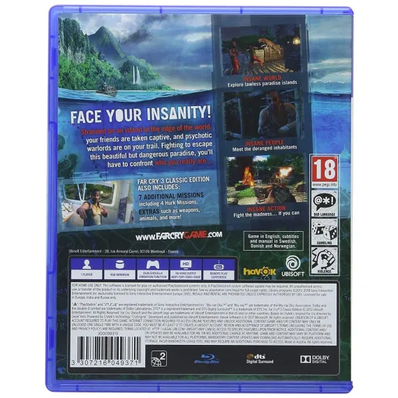 Far beyond the limits of civilization lies an island, a lawless place ruled by violence and human suffering, where your only escape is through drugs or the muzzle of a gun. This is where you find yourself, stranded in a place that has forgotten right from wrong, a place where you must live by the principles of violence to survive. Far Cry 3 Classic Editionbrings the Rook Islands to current-gen consoles for the first time. Discover the islands bloody secrets and take the fight to the enemy; improvise and use your environment to your advantage; and outwit its roster of ruthless, deranged inhabitants to save your friends. Beware the beauty and mystery of this island of insanity youll need more than luck to escape alive.